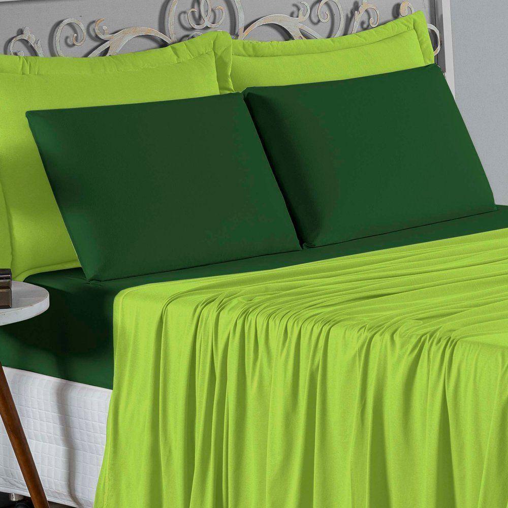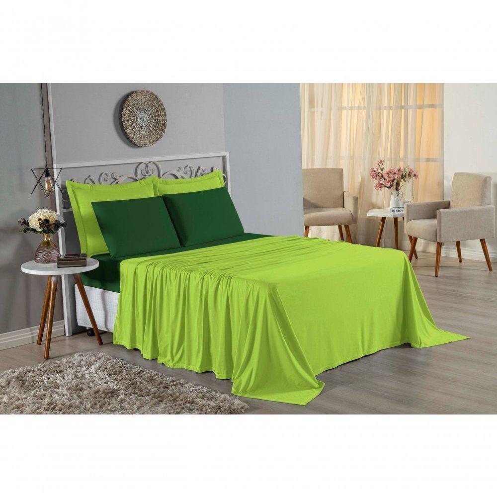 Jogo De Cama King Nobre 4 Peças Lençol Com Elástico De 30cm De Altura Malha 100% Algodão - Pistache / Verde-bandeira