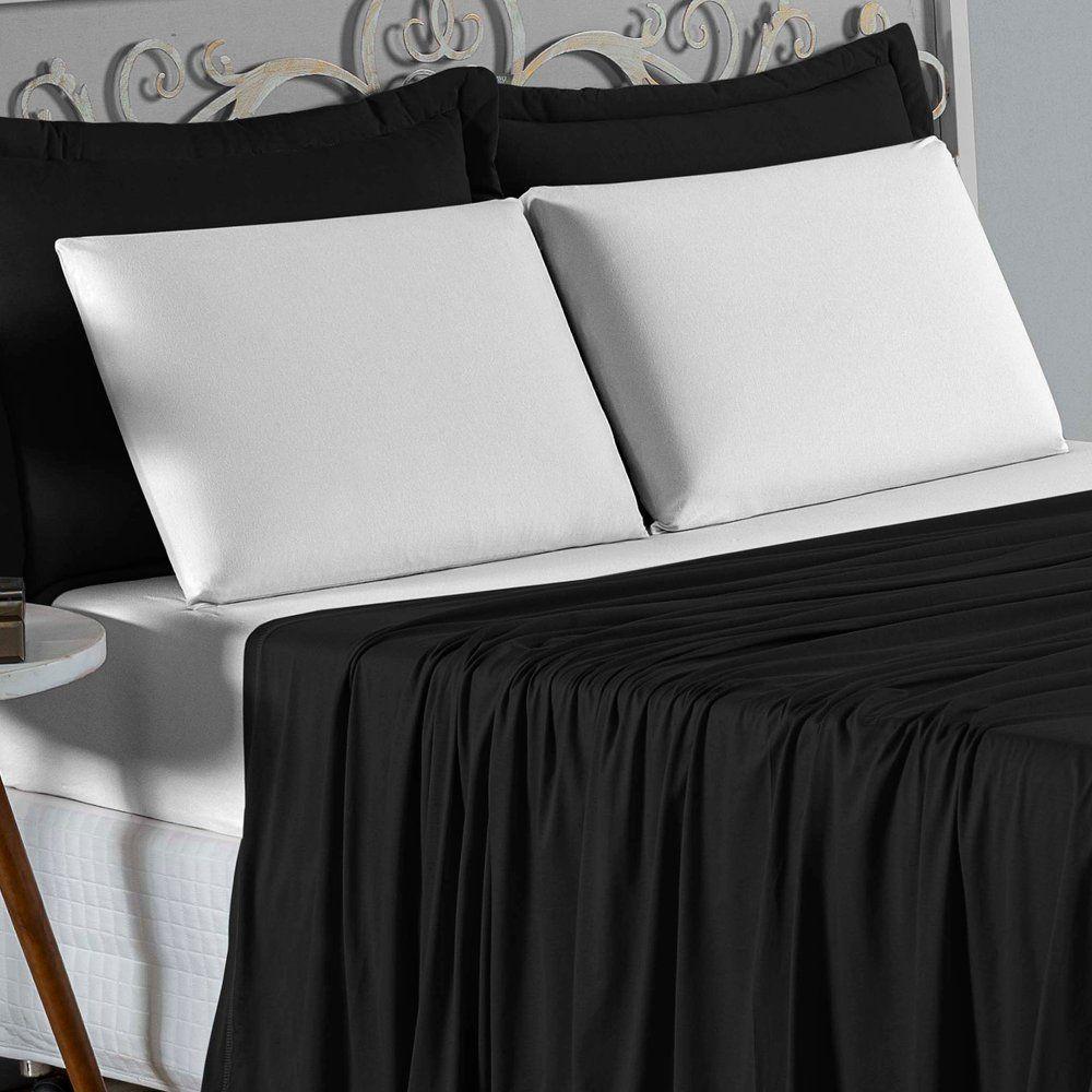 Jogo De Cama King Nobre 4 Peças Lençol Com Elástico De 30cm De Altura Malha 100% Algodão - Preto / Branco