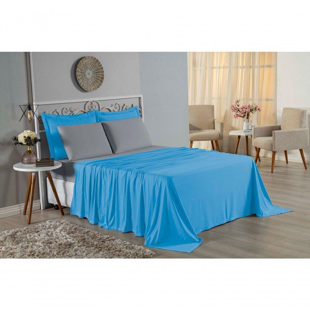 Jogo De Cama King Nobre 4 Peças Lençol Com Elástico De 30cm De Altura Malha 100% Algodão - Turquesa / CinzaComplete a grandiosidade da sua cama com o Jogo de Cama King Nobre 4 Peças. Espaço, conforto e a pureza do algodão reunidos em um enxoval magnífico.Por que este Jogo de Cama é a escolha perfeita?- Máximo Conforto King: Desenvolvido para camas amplas, com um lençol de cima gigante (2,50m x 2,90m) que proporciona cobertura total e caimento impecável.- Puro Algodão: A composição 100% natural oferece um toque sedoso e fresco, essencial para um descanso reparador.- Fixação Ideal: O lençol de baixo abraça colchões King de até 30cm de altura, mantendo a cama sempre organizada.- Jogo Completo: Tudo o que você precisa para vestir a cama com elegância e funcionalidade em um único pacote.Produto composto por (Total 04 Peças):01 Lençol de Cima (Virol): 2,50m x 2,90m01 Lençol de Baixo com Elástico: 1,93m x 2,03m x 30cm02 Fronhas: 70cm x 50cmComposição:Tecido: Malha 100% Algodão - Fio 30/1 Penteado