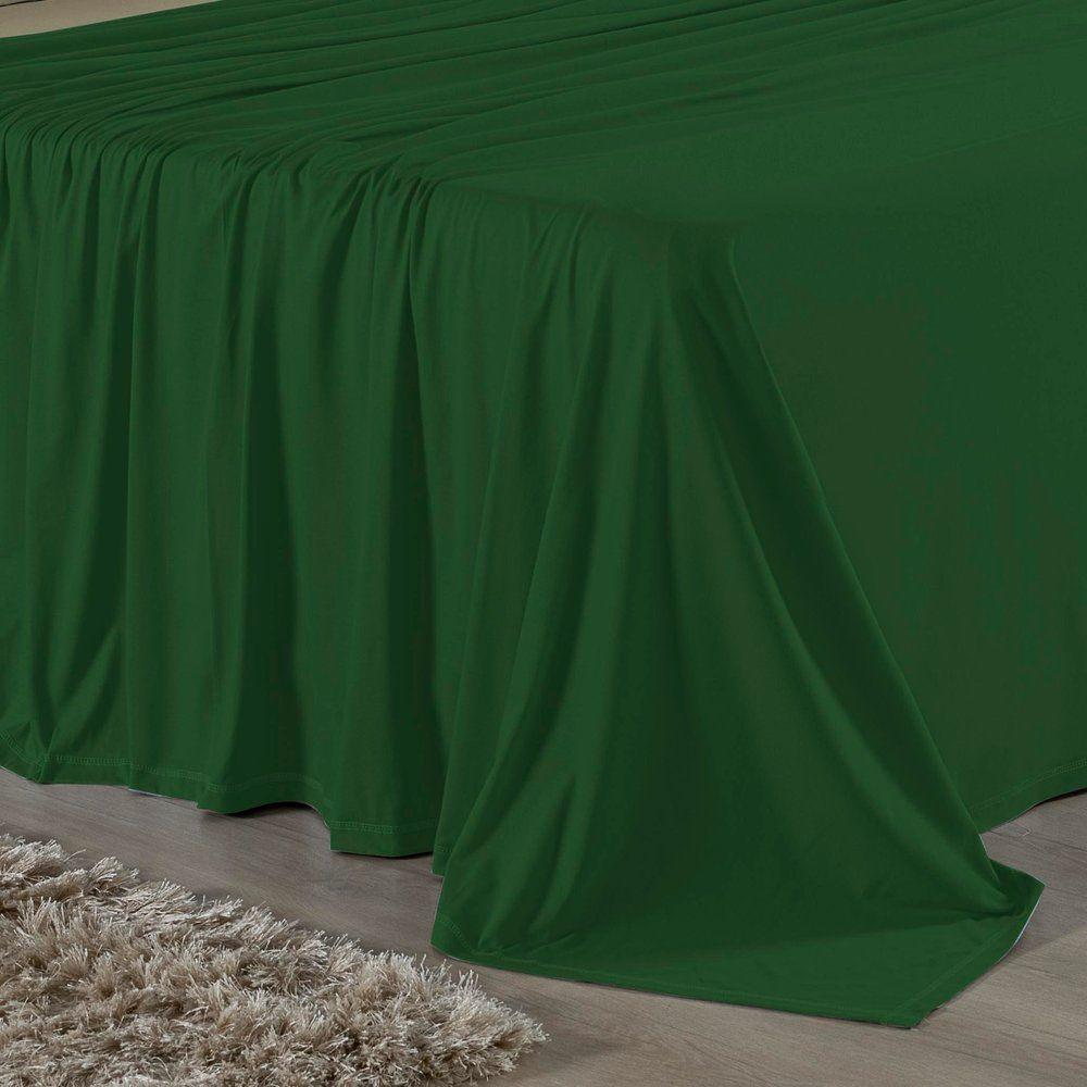 Jogo De Cama King Nobre 4 Peças Lençol Com Elástico De 30cm De Altura Malha 100% Algodão - Verde-bandeira / Avelã