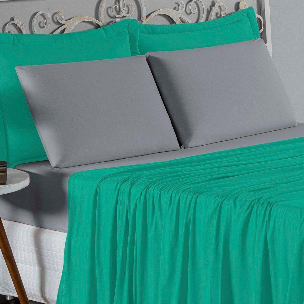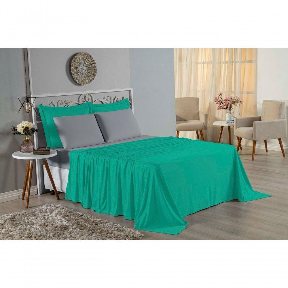 Jogo De Cama King Nobre 4 Peças Lençol Com Elástico De 30cm De Altura Malha 100% Algodão - Jade / Cinza