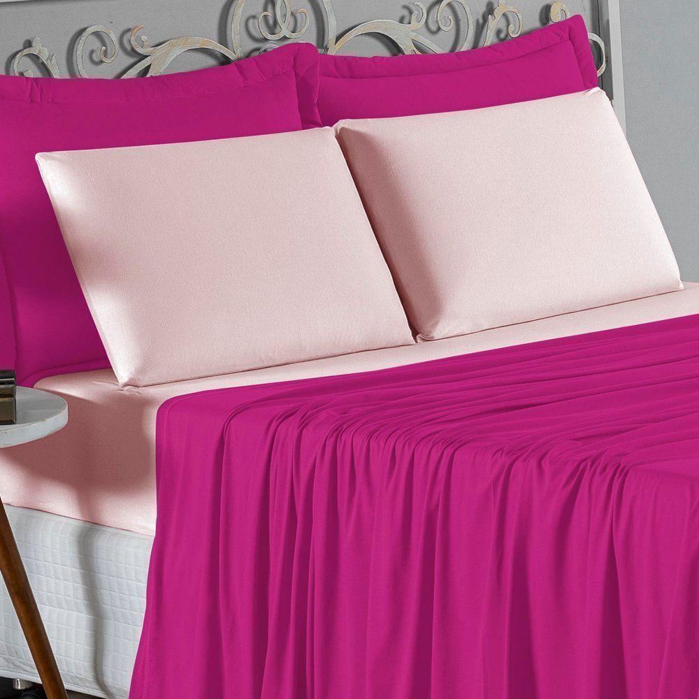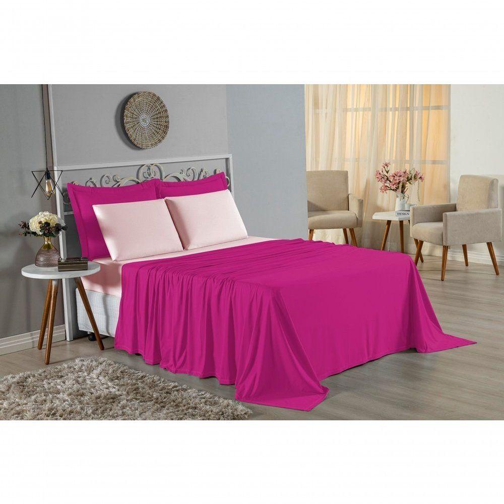 Jogo De Cama King Nobre 4 Peças Lençol Com Elástico De 30cm De Altura Malha 100% Algodão - Pink / Rosa