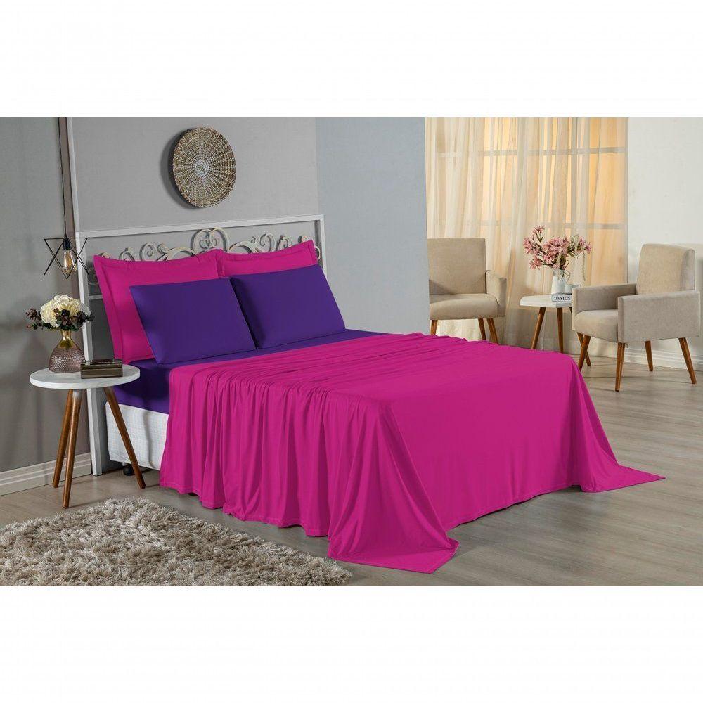 Jogo De Cama King Nobre 4 Peças Lençol Com Elástico De 30cm De Altura Malha 100% Algodão - Pink / Roxo