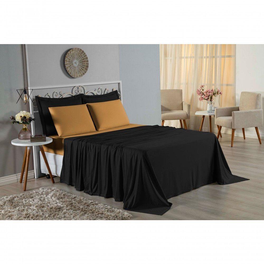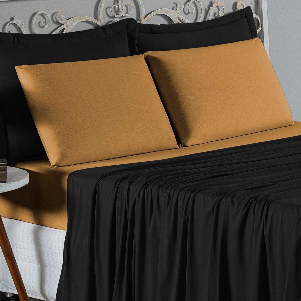 Jogo De Cama King Nobre 4 Peças Lençol Com Elástico De 30cm De Altura Malha 100% Algodão - Preto / Cobre