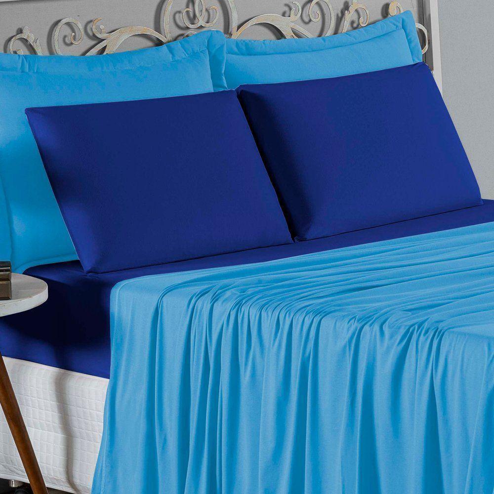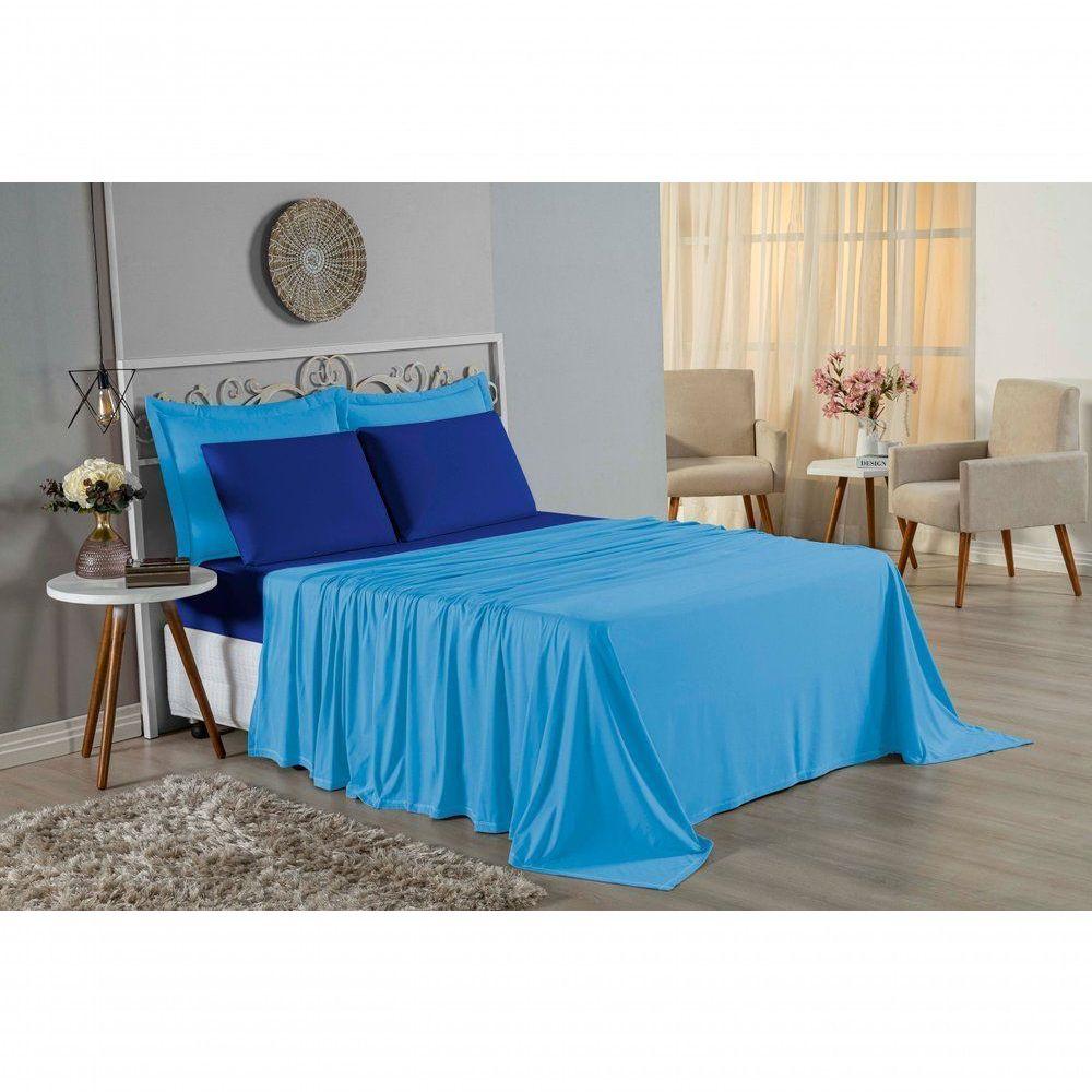 Jogo De Cama King Nobre 4 Peças Lençol Com Elástico De 30cm De Altura Malha 100% Algodão - Turquesa / Royal