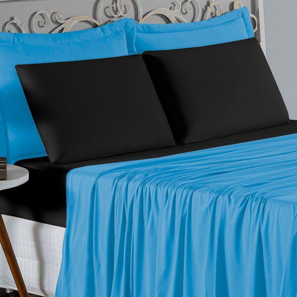 Jogo De Cama King Nobre 4 Peças Lençol Com Elástico De 30cm De Altura Malha 100% Algodão - Turquesa / Preto