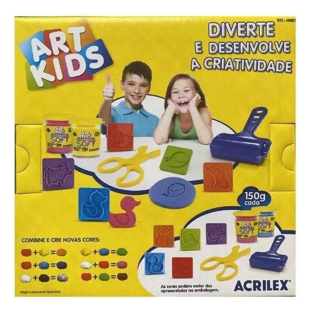 Kit Massinha De Modelar Art Kids Carimbos 40007 - AcrilexKit Massinha de Modelar Art Kids Carimbos 40007 - AcrilexPara estimular a imaginação e criatividade, o Kit Massinha de Modelar Art Kids Carimbos 40007 da Acrilex é perfeito! Com design moderno, possui 2 potes de massinha de modelar, 5 carimbos, 1 tesoura e 1 rolinho, não perca mais tempo para se divertir!Características técnicas:- Material da estrutura em água, carboidrato de cereais, cloreto de sódio, conservantes e resinas termoplástica- Possui 2 potes de massinha de modelar 150g cada- 5 Carimbos- 1 Tesoura- 1 Rolinho- Possui cheirinho de tutti frutti- Cores podem variar- Produto atóxicoDimensões: Altura: 9 cm Largura: 17 cm Profundidade: 17 cmInformações importantes:- Imagens meramente ilustrativa, pode ter alteração de cor.- Toda mercadoria segue segurada contra qualquer sinistro, em caso de anormalidade, recuse.- As caixas ou pacotes possuem identificação com o nome, cidade e quantidades de volumes relativos à compra para conferencia do recebedor.