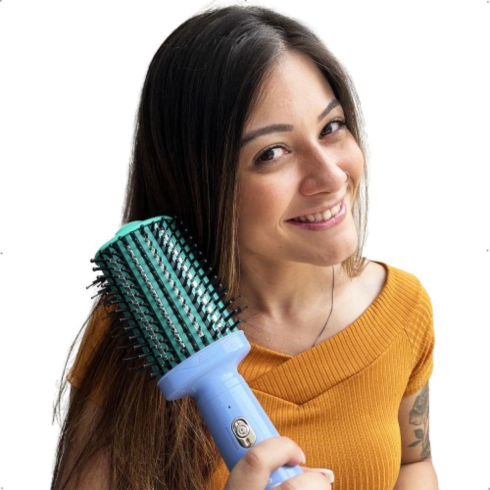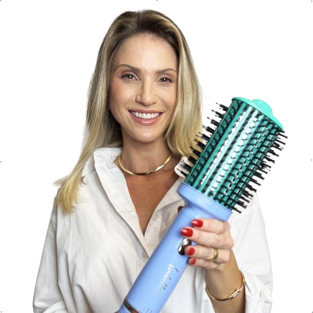 Escova Secadora Com Pente Alisador Isabella Azul Segredo Dela 110VESCOVA SECADORA + PENTE ALISADOR ISABELLA MODELA LEGALA Escova Secadora + Pente Alisador Isabella chegou para realizar o desejo de mulheres que buscam praticidade, performance e beleza em um único produto. Uma verdadeira revolução no mercado de escovas secadoras!Com a Isabella, você seca, alinha, alisa, modela e sela os fios rapidamente, conquistando um visual incrível em poucos minutos, sem precisar sair de casa.O SEGREDO DA ISABELLA MODELA LEGAL- 2 em 1: de um lado, escova secadora; do outro, pente alisador (chapinha)- 5 funções integradas: desembaraça, seca, modela, alisa e sela os fios- Tecnologia PTC: aquece de forma segura e eficiente até 200?°C- Cerdas exclusivas: desenvolvidas especialmente para atender à diversidade dos cabelos das brasileiras- Design moderno e ergonômico: mais conforto e segurança durante o uso- Produto exclusivo Segredo Dela: lançamento inédito no mercado brasileiro- Resultado profissional sem necessidade de chapinha adicionalCOMO FUNCIONA?A Isabella possui dois lados com finalidades distintas:Escova Secadora (lado com cerdas flexíveis)Ideal para uso com os cabelos úmidos (não encharcados). Proporciona uma secagem eficaz sem danificar os fios.Pente Alisador (lado com cerdas rígidas PTC)Indicado para uso com os cabelos secos. Alisa da raiz às pontas, com acabamento preciso e duradouro.Você pode utilizar os dois lados juntos por até 10 minutos, ou separadamente conforme a necessidade. Após o uso, desligue o aparelho e deixe-o esfriar com o lado das cerdas rígidas voltado para baixo, preservando as cerdas macias.BENEFÍCIOS EXCLUSIVOS:- Cabelos lisos e alinhados com efeito duradouro- Brilho natural e aspecto saudável- Substitui o uso da chapinha após a escovação- Ideal para uso diário ou retoques no dia seguinte à lavagem- Mais rápida que escovas comuns- Perfeita para todos os tipos de cabelosDICAS DE USO:Use a escova secadora com mechas de até 5 cm, uma de cada vez, para melhor resultado.Use o pente alisador com os fios secos, para selar e dar acabamento.Excelente para retoques no dia seguinte à lavagem.ESPECIFICAÇÕES TÉCNICAS:- Garantia: 6 meses- Cabo giratório de 2 metros- Cor: Azul com detalhes em turquesa- Temperatura escova secadora: 80?°C- Temperatura pente alisador: 200?°C- Potência: 1000W- Potência sonora: 85 dB- Peso: 583g- Dimensões: 38 cm (C) x 11 cm (L) x 9 cm (A)AVISO IMPORTANTE!Para proteger seus cabelos, utilize sempre um protetor térmico antes de usar a escova ou o pente alisador.Desligue da tomada após o uso para maior segurança.A Escova Secadora + Pente Alisador Isabella Modela Legal é a aliada perfeita para deixar seus cabelos impecáveis todos os dias. Descubra o segredo da beleza prática e eficiente!Acesse o manual da Escova Secadora + Pente Alisador Isabella Modela Legal