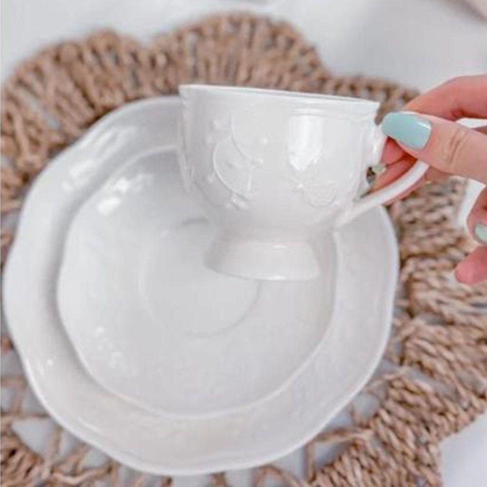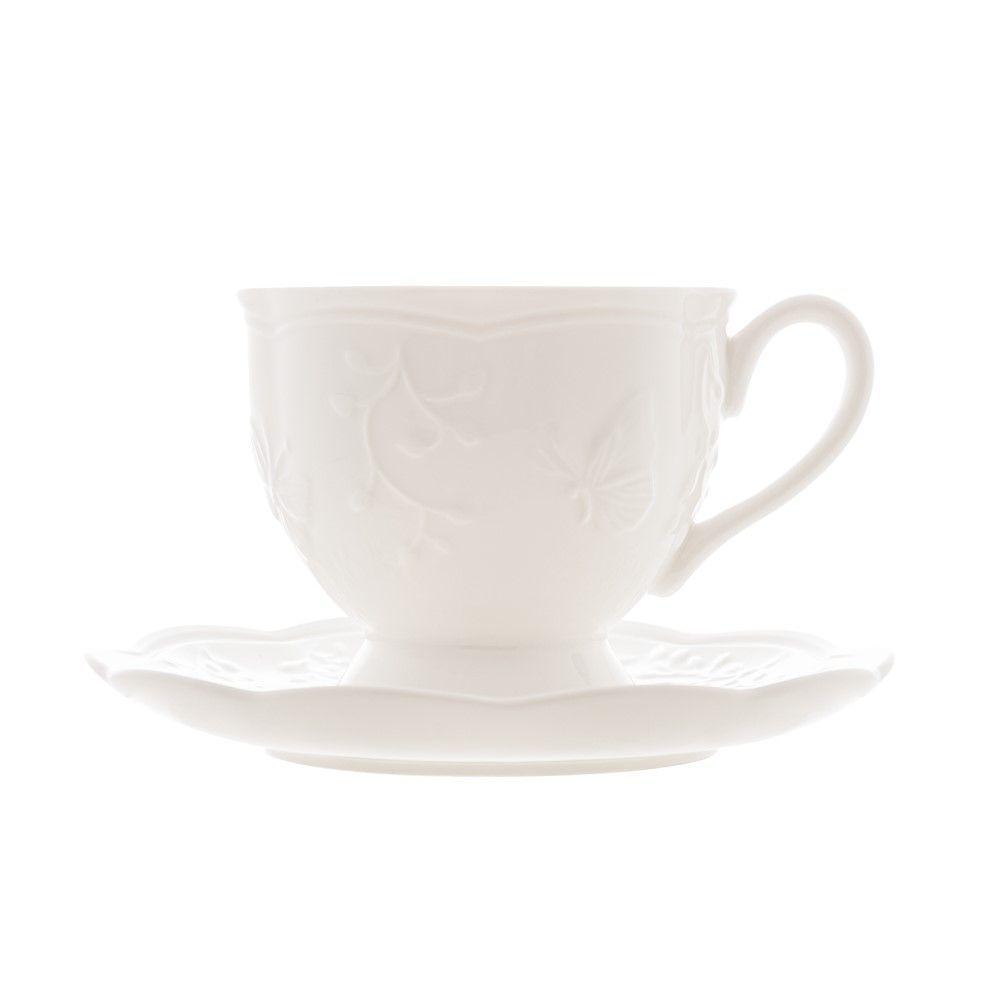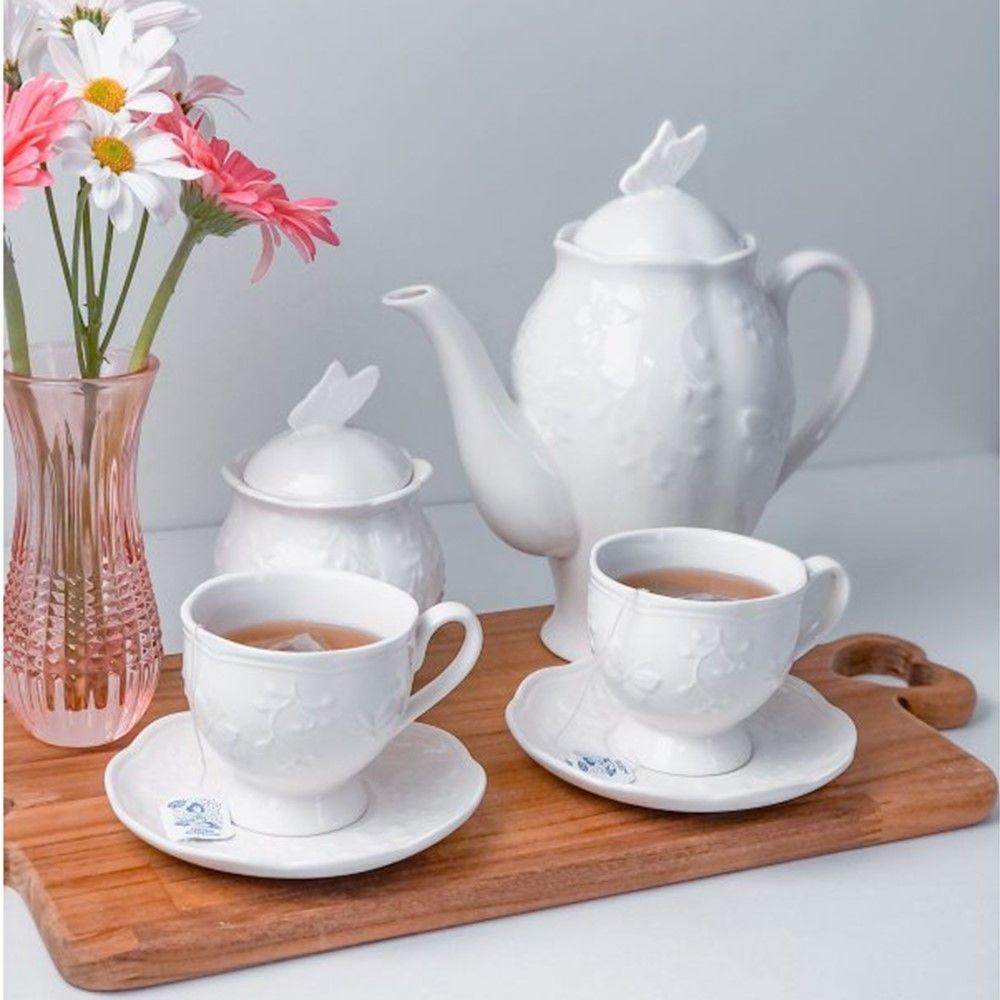 Xícara De Chá De Porcelana Branca New Bone Butterfly Flower Lyor 200ml