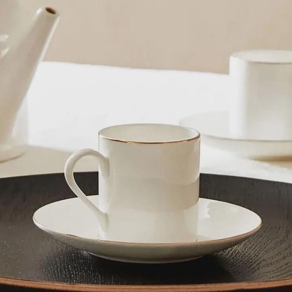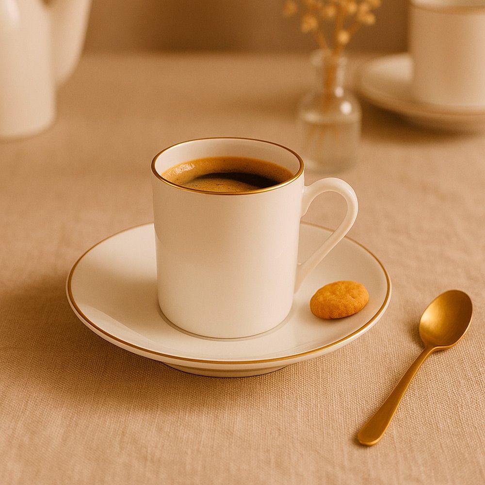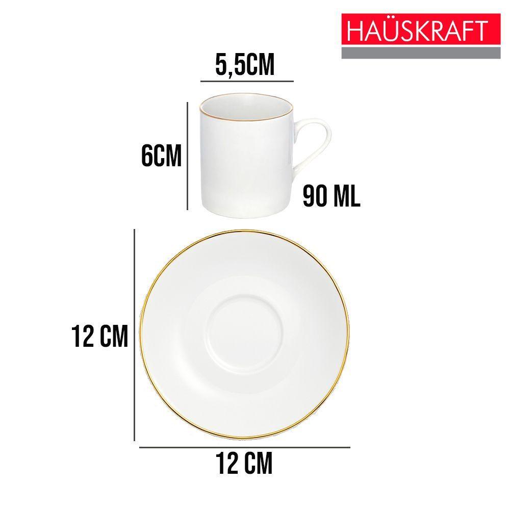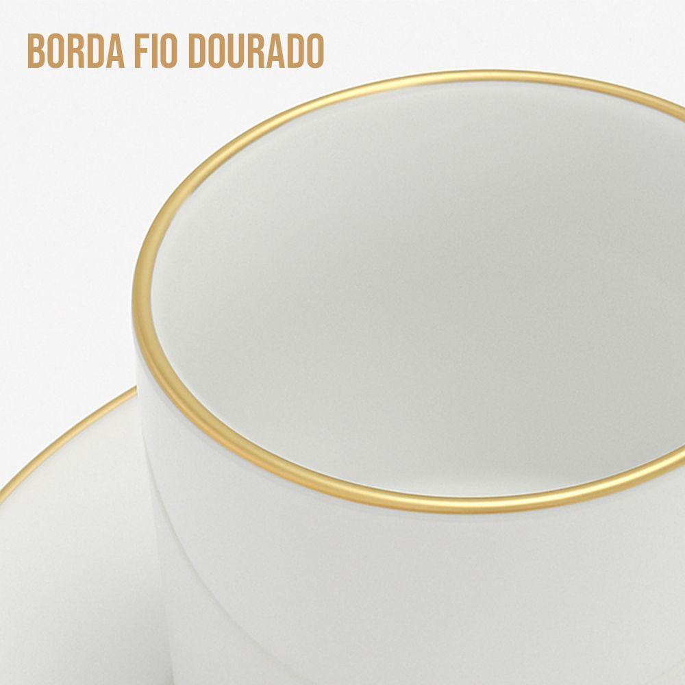 Xícara De Café Porcelana Borda Dourada Com Pires Royal Premium 90ml Haüskraft