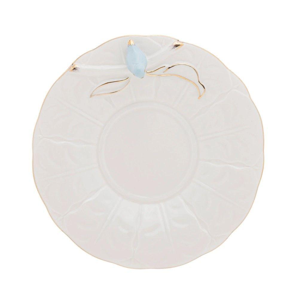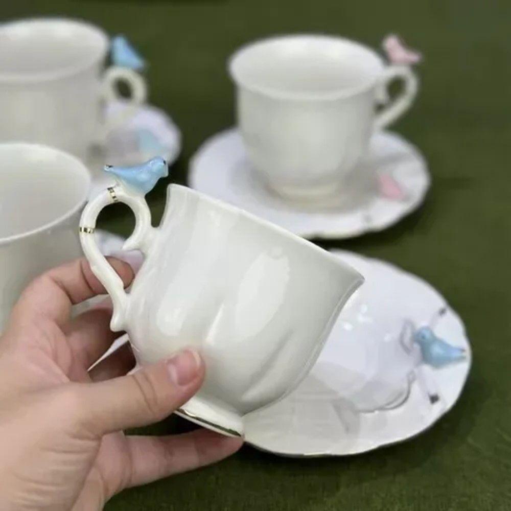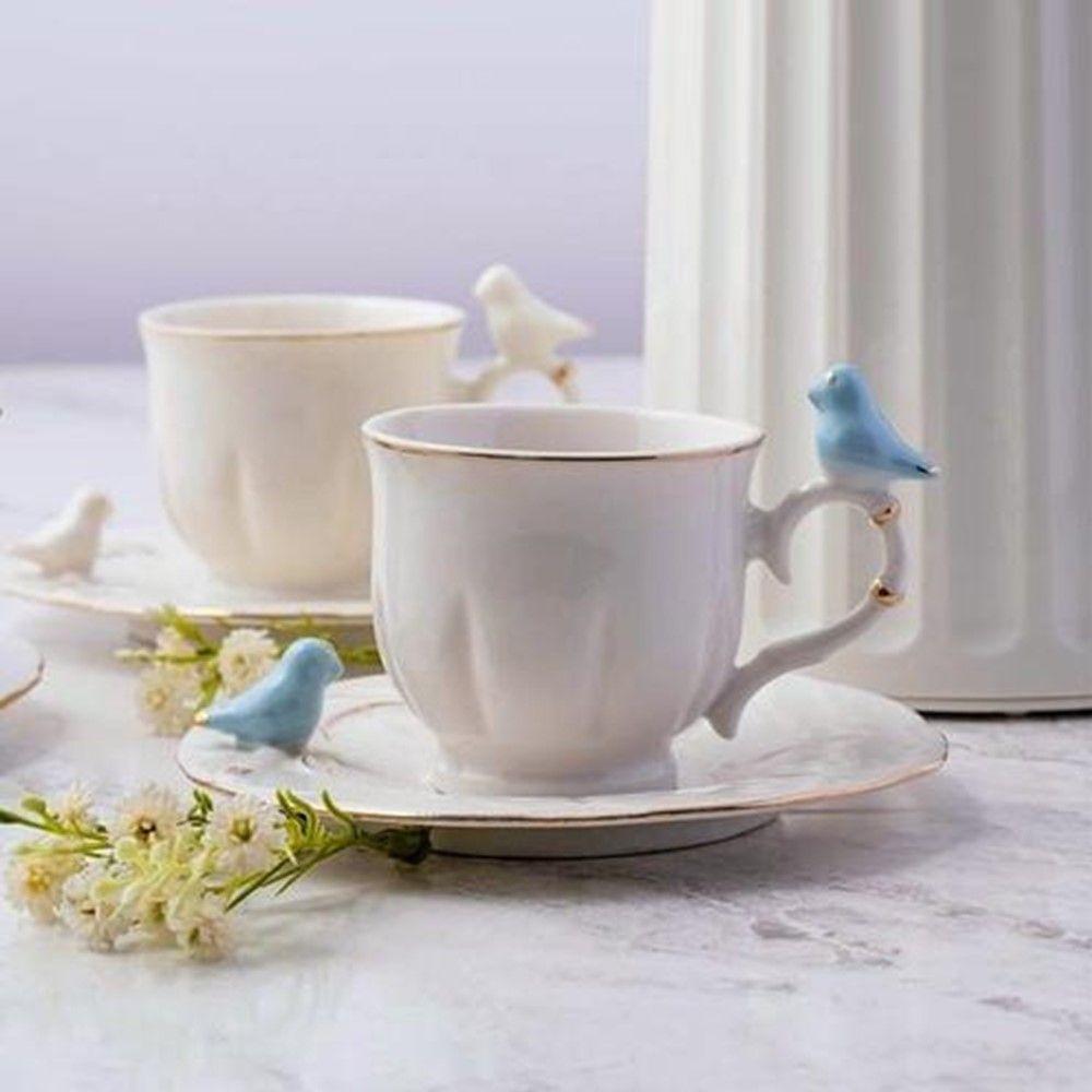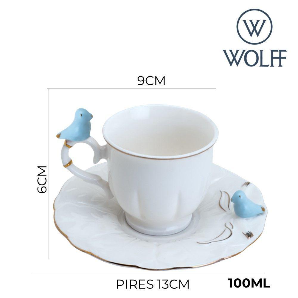 Xícara De Café Porcelana Birds Azul E Branca Fio Dourado Pássaro Com Pires 100ml Wolff