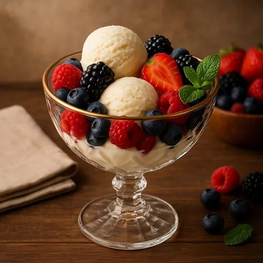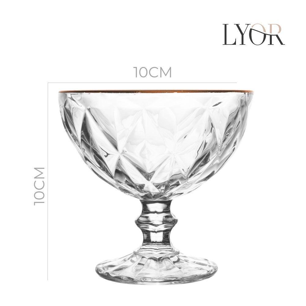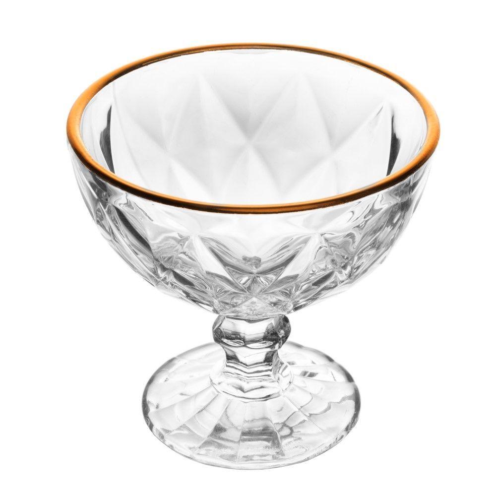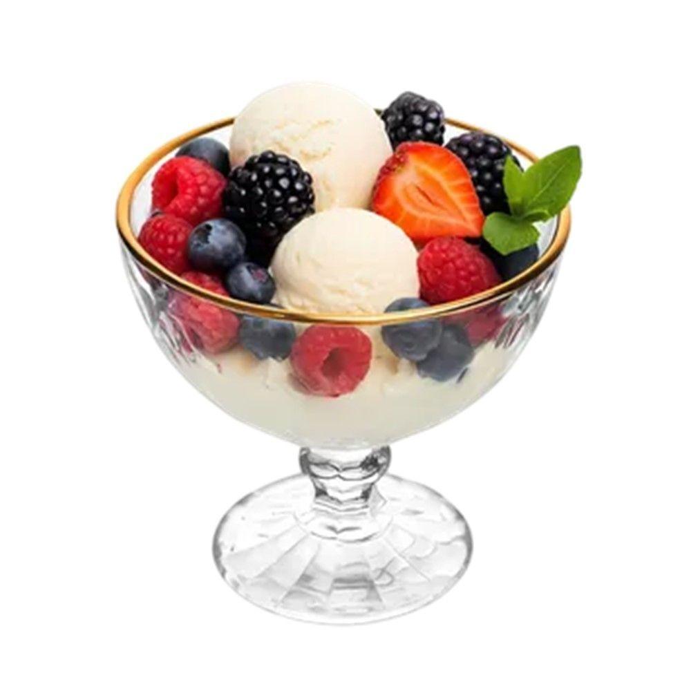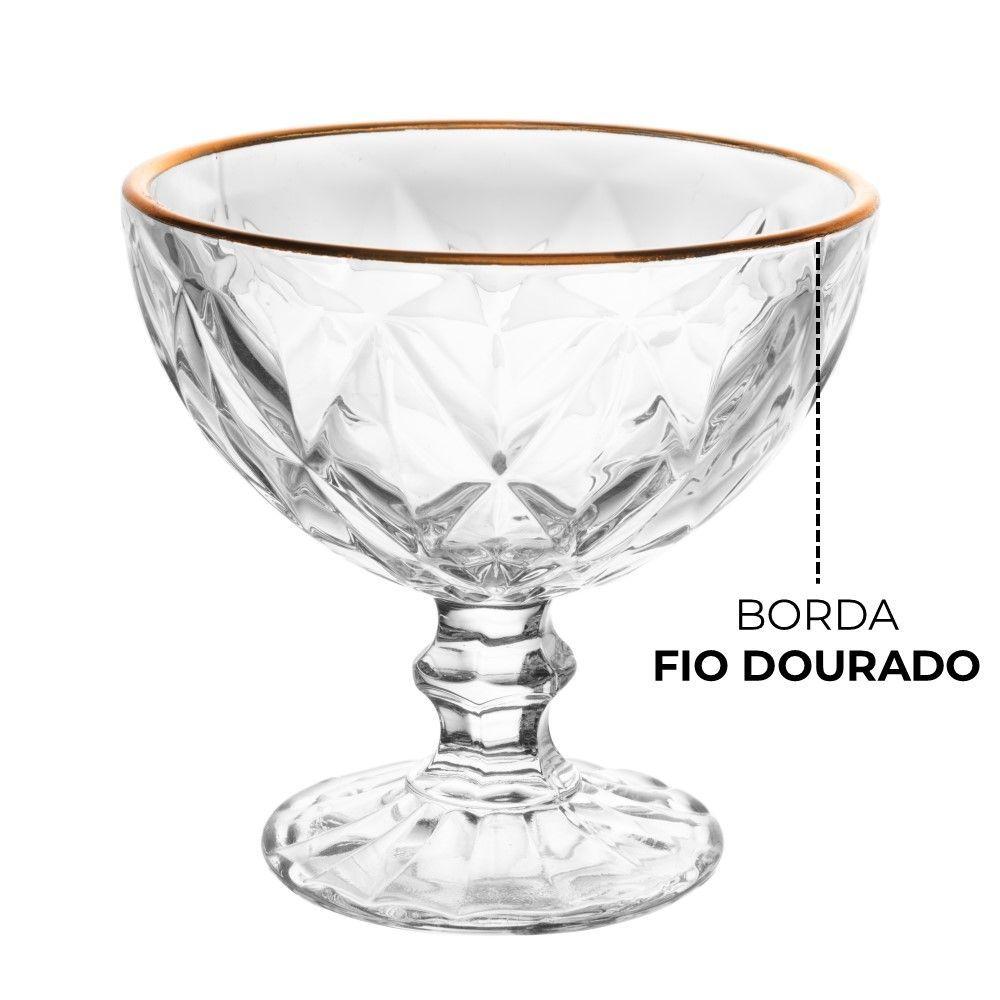 Jogo De Sobremesa 2 Taças Vidro Com Borda Fio Dourado Diamond Sorvete Lyor 250ml