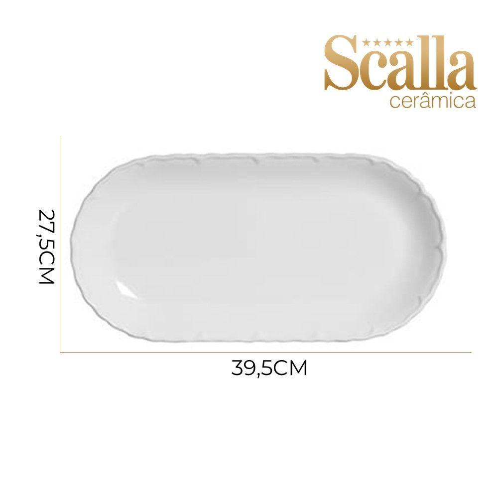 Travessa De Cerâmica Branca Oval Rasa Scalla 3,5×39,5×27,5cm