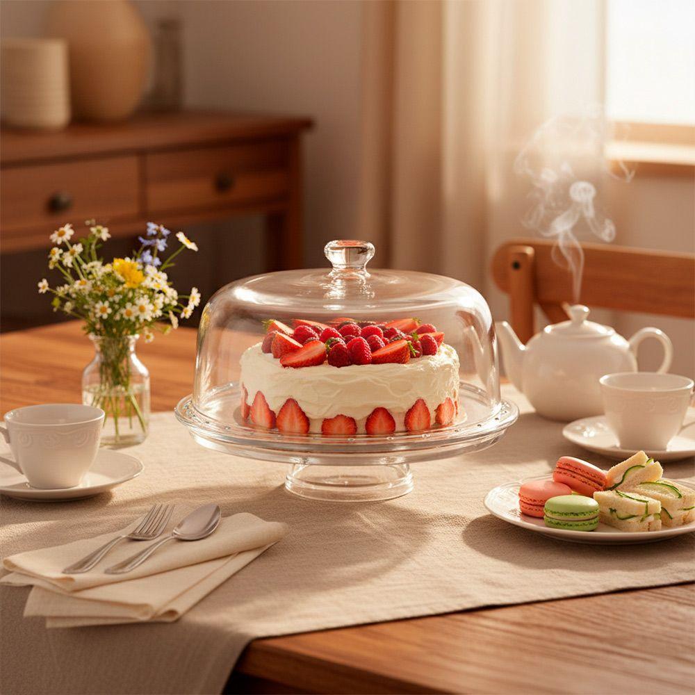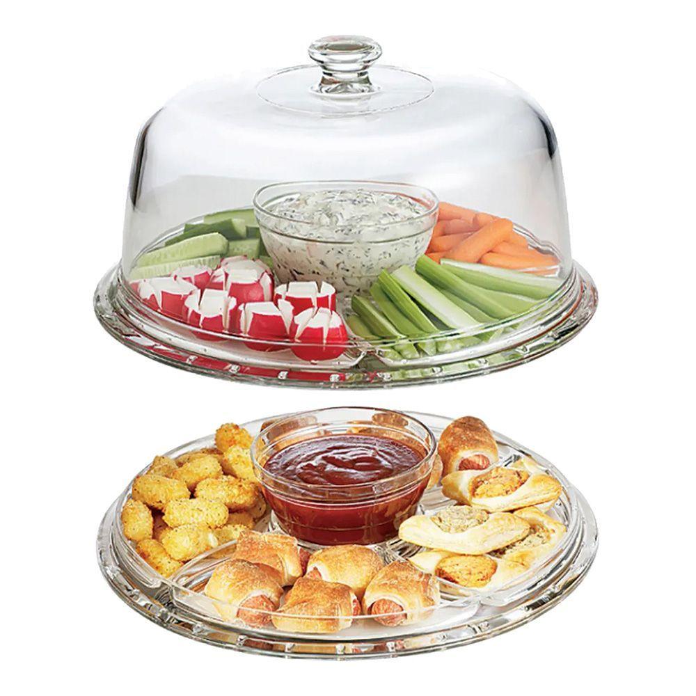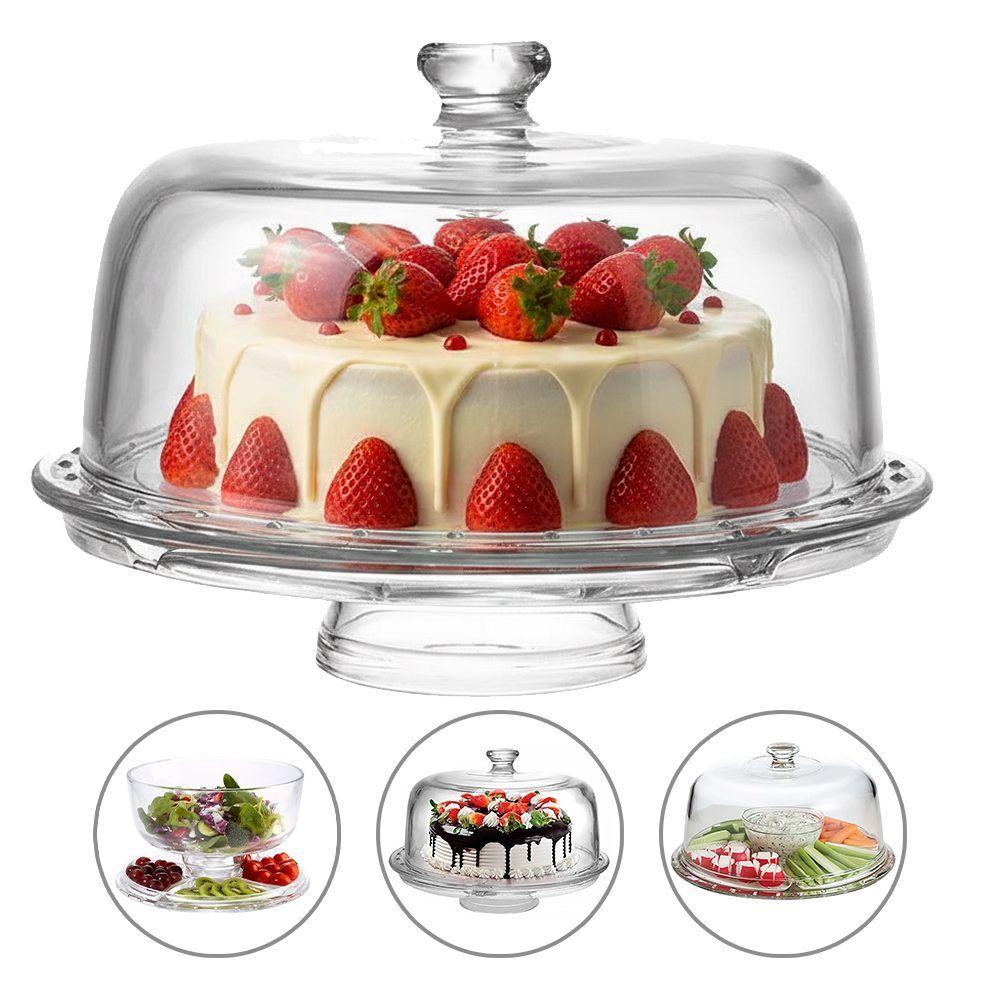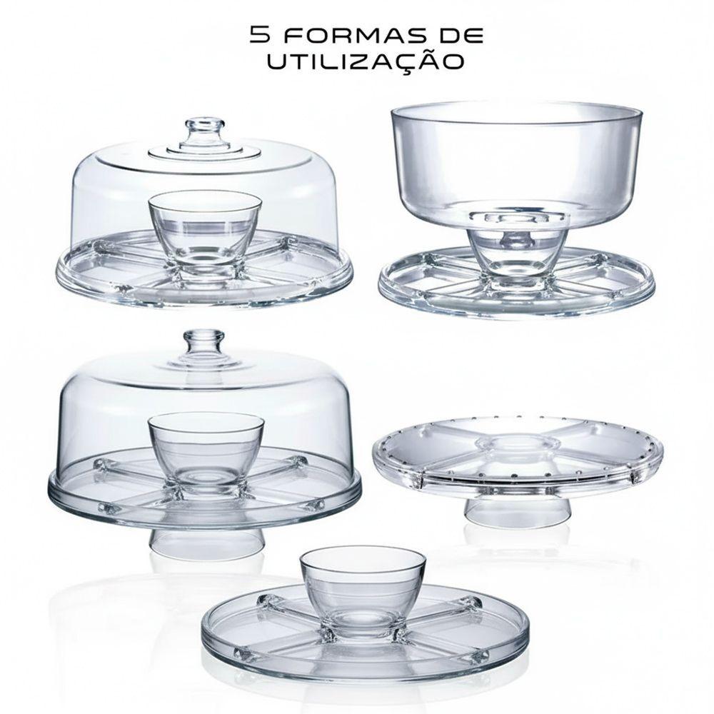 Boleira 5 Em 1 Vira Petisqueira Vidro Com Tampa Transparente Centro De Mesa 30cm Haüskraft