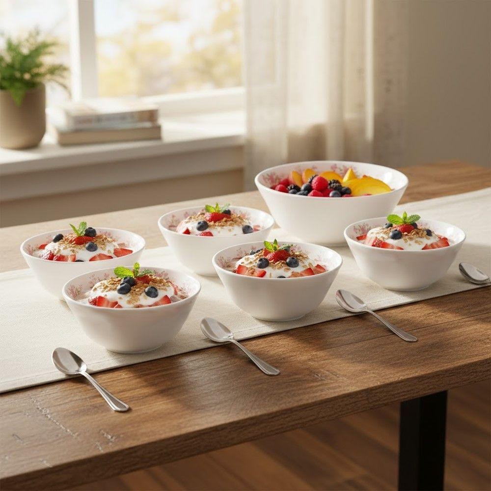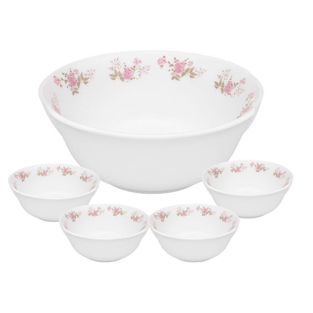 Jogo De Sobremesa De Vidro 1 Tigela 1400ml E 4 Bowls 400ml Branco Em Casa Tem