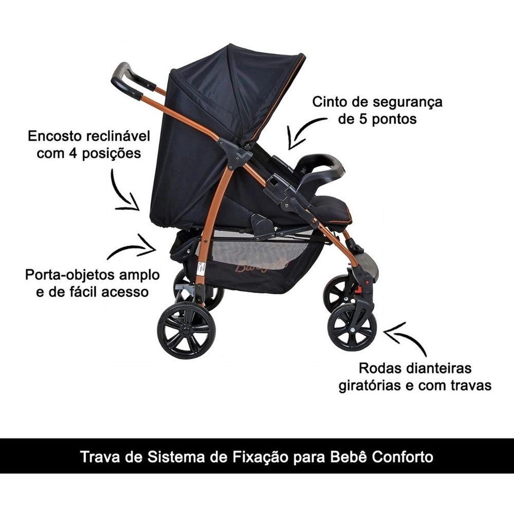 Travel System Burigotto Carrinho de Bebê com Bebê Conforto Ecco + Touring X Preto com Cobre