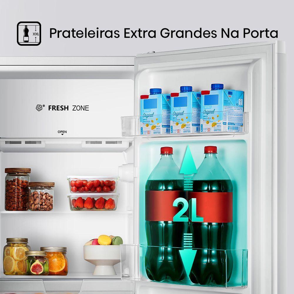 Frigobar Hisense 115L RR157NW2A Branco 220VPraticidade, design moderno e eficiência para o seu dia a dia!O Frigobar Hisense 115L é a combinação ideal entre estilo, funcionalidade e desempenho. Compacto e elegante, ele é perfeito para ambientes como escritórios, quartos, áreas de lazer ou cozinhas pequenas — garantindo suas bebidas e alimentos sempre na temperatura ideal.Destaques e BenefíciosFresh ZoneCâmara exclusiva que mantém a temperatura entre -6°C e 0°C, proporcionando congelamento suave para carnes frescas, peixes, frios e laticínios.Gaveta para frutas e legumesMantém os alimentos sempre frescos, crocantes e saborosos por mais tempo.Prateleira de porta extra grandePerfeita para armazenar garrafas de até 2 litros, jarras e sucos, otimizando o espaço interno e deixando tudo ao alcance das mãos.Prateleiras de vidro temperadoResistentes e duráveis, suportam até os recipientes mais pesados com .Porta reversívelOferece total flexibilidade para adaptação ao seu ambiente. Escolha a abertura para a direita ou esquerda, garantindo conforto e praticidade.Especificações TécnicasMarca: HisenseModelo: RR157NW2ACor: BrancoTensão: 220VCapacidade total: 115LQuantidade de portas: 1Porta reversível: SimTipo de degelo: DefrostPuxador: EmbutidoPainel: Mecânico (interno)Gás refrigerante: R600a (ecológico)Classificação energética: A+Frequência: 60HzPotência de entrada: 70WConsumo elétrico: 19,7 kWh/mêsTipo de clima: TFaixa de temperatura: 2°C a 8°CDimensões e Peso AproximadosAltura: 84 cmLargura: 47,5 cmProfundidade: 55,6 cmPeso: 21,5 kgGarantia12 meses (3 meses legais + 9 meses contra de fabricação)Informações ImportantesVerifique a montagem e instalação correta antes do uso.Produto indicado para uso doméstico.Confira o produto no ato da . Em caso de irregularidade, recuse o .As informações são de responsabilidade do fabricante e podem sofrer alterações sem aviso prévio.Imagens meramente ilustrativas.