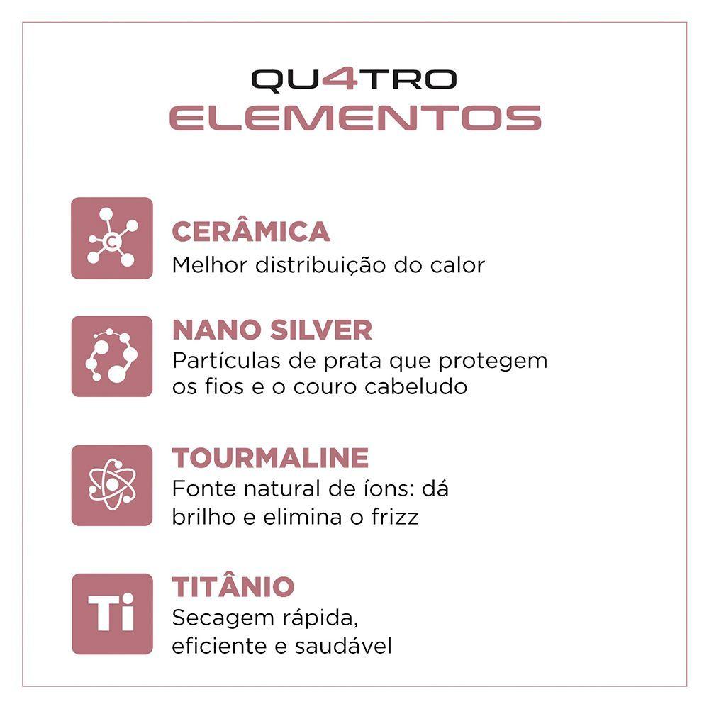 Escova Secadora Mondial By Juliette 3 Em 1 1300w Es-ju-01 Golden Rose BivoltEscova Secadora Mondial By Juliette 1300W ES-JU-01 Golden Rose BivoltA Escova Secadora da Linha by Juliette Qu4tro Elementos traz um revestimento especial enriquecido com infusão de Cerâmica, Titânio, e Nano Silver. Esses 4 elementos, juntos, protegem seus fios e garantem uma aparência mais saudável aos cabelos, com brilho intenso, maciez e sem frizz.REVESTIMENTO ESPECIAL COM QU4TRO ELEMENTOS:Cerâmica: Garante uma melhor do calor e contribui para uma secagem rápida e mais saudável.Titânio: Tecnologia que age na umidade dos cabelos e reduz o tempo de secagem, além de eliminar o efeito frizz.: Fonte natural de íons negativos, que eliminam o frizz e garantem mais brilho.Nano Silver: Partículas de prata que ajudam a inibir a ação de bactérias, contribuindo para a proteção dos fios e do couro cabeludo.3 EM 1: SECA, ALISA E MODELA: O poder do secador aliado à facilidade da escova. Você seca, escova e modela o cabelo ao mesmo tempo, com uma única mão.POTÊNCIA: 1300W: Alta potência para uma secagem rápida e eficiente.BIVOLT: Pode ser utilizada em ambas as voltagens: 127V e 220V. Basta ajustar a chave seletora e ter a liberdade para usar sua escova em qualquer lugar!EXCLUSIVO SUPORTE DE APOIO: Para apoiar a sua escova e ajudar a preservar a forma das cerdas.3 NÍVEIS DE TEMPERATURA: São 3 opções de ajuste para garantir o resultado que você deseja.CABO GIRATÓRIO DE 2,5 METROS: O cabo-plugue tem 2,5m de comprimento e gira 360°, garantindo mais autonomia de movimento.DESIGN OVAL: FACILITA A ESCOVAÇÃO: O design oval é um aliado na hora de alisar as mechas, pois proporciona maior tração nos fios com o movimento da escovação.Mondial, a escolha inteligente!Especificações Técnicas:Modelo: ES-JU-01Cor: Golden RoseVoltagem: BivoltItens inclusos:01 Escova Secadora; 01 Suporte para apoio e 01 Manual de InstruçõesFunções: Seca, escova e modelaControle de temperatura: SimNíveis de temperaturas: 3Cabo giratório: SimPotência: 1300wDimensões e Peso Aproximados do Produto:Altura:37,5 cmLargura:10,5cmProfundidade:8,5 cmPeso:550gGarantia Produto: 1 Ano (3 meses de garantia legal e 9 meses para de fabricação).Importante: Imprescindível à conferência no ato da . Em caso de anormalidade, recuse o .Todas as informações divulgadas são de responsabilidade do fabricante, podendo sofrer alterações sem nenhum aviso prévio.Imagem meramente Secadora Mondial By Juliette 3 em 1 1300W ES-JU-01 Golden Rose Bivolt
