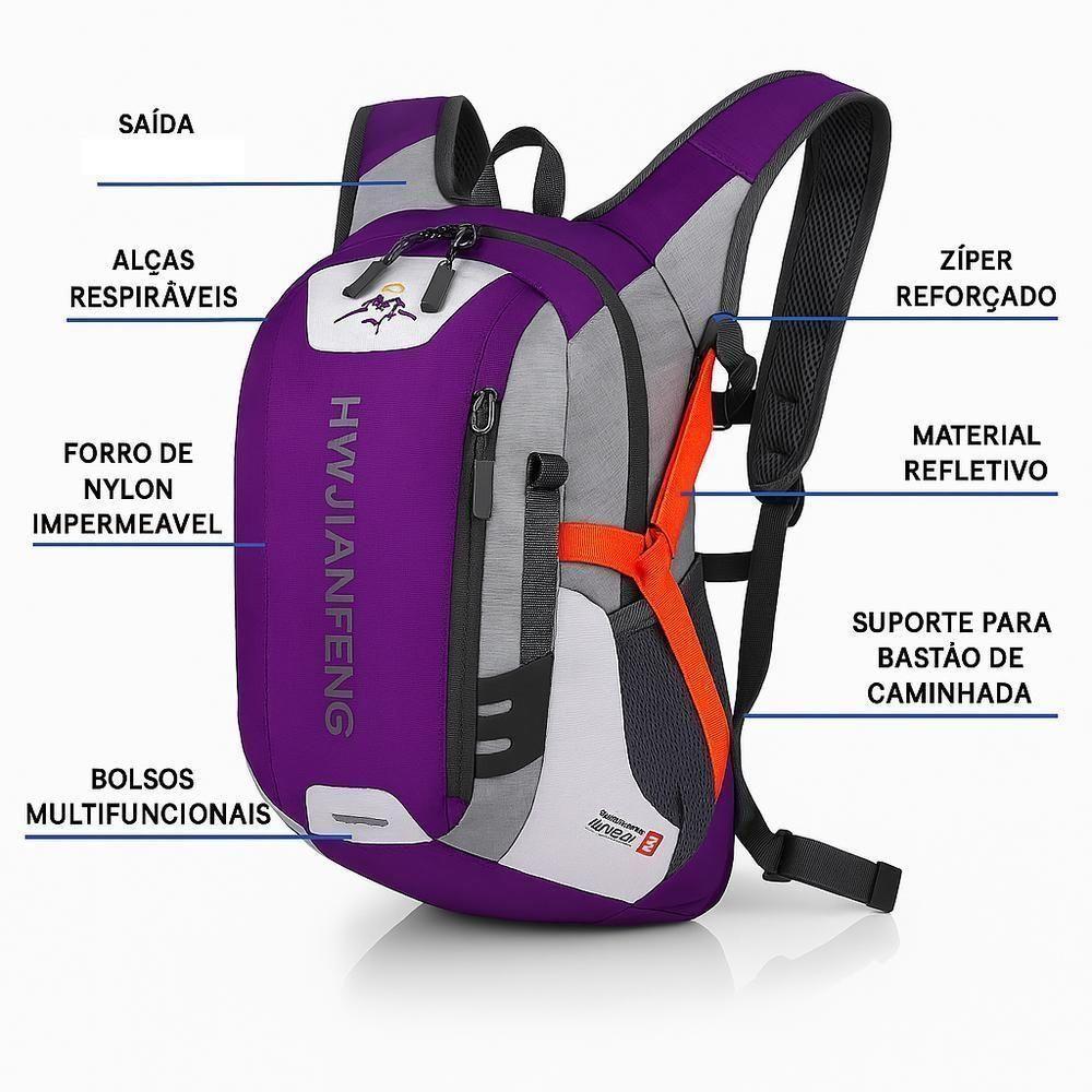 Mochila Impermeavel Esportiva Com Cinta Peitoral Para Bike Trilhas Corrida Camping Passeio RoxaMochila ciclismo ? Resistente, Versátil e Ideal para Aventuras ao Ar LivreSeja em trilhas, pedaladas, corridas ou longas caminhadas, a Mochila de ciclismo é a companhia ideal para quem busca desempenho, conforto e praticidade. Com design ergonômico e materiais de alta durabilidade, ela oferece proteção e funcionalidade em qualquer ambiente.Destaques do Produto:Capacidade: espaço ideal para transportar seus itens com organização e segurança.Material impermeável: protege seus pertences mesmo em dias chuvosos.Almofada traseira respirável: proporciona ventilação eficiente e conforto durante o uso.Cinta barrigueira e peitoral ajustáveis: oferecem melhor fixação ao corpo.Recursos Inteligentes:Zíperes de metal reforçadosBolso fundo de fácil acessoElástico frontal para fixação de capacete ou objetos maioresFitas refletivas para maior segurança em ambientes com pouca luzEspecificações Técnicas:Dimensões: 45cm x 25cm x 16cmCapacidade: 18 litrosMaterial: Poliéster e Nylon de alta resistênciaBolsos externos: ideais para pequenos objetosBolsos internos com divisórias para refil de água e itens essenciais (refil e acessórios não acompanham o produto)Conteúdo da Embalagem:1 Mochila de ciclismoObservações Importantes:As imagens são ilustrativas. Algumas fotos podem mostrar variações de cor ou elementos adicionais com fins demonstrativos.O vídeo do anúncio é ilustrativo, desenvolvido a partir da imagem do produto para apresentar suas funcionalidades.Produto ideal para quem busca resistência, conforto e performance em cada aventura. Adquira a sua e aproveite liberdade e hidratação em qualquer trajeto.Mochila ciclismo ? Resistente, Versátil e Ideal para Aventuras ao Ar LivreSeja em trilhas, pedaladas, corridas ou longas caminhadas, a Mochila de ciclismo é a companhia ideal para quem busca desempenho, conforto e praticidade. Com design ergonômico e materiais de alta durabilidade, ela oferece proteção e funcionalidade em qualquer ambiente.Destaques do Produto:Capacidade: espaço ideal para transportar seus itens com organização e segurança.Material impermeável: protege seus pertences mesmo em dias chuvosos.Almofada traseira respirável: proporciona ventilação eficiente e conforto durante o uso.Cinta barrigueira e peitoral ajustáveis: oferecem melhor fixação ao corpo.Recursos Inteligentes:Zíperes de metal reforçadosBolso fundo de fácil acessoElástico frontal para fixação de capacete ou objetos maioresFitas refletivas para maior segurança em ambientes com pouca luzEspecificações Técnicas:Dimensões: 45cm x 25cm x 16cmCapacidade: 18 litrosMaterial: Poliéster e Nylon de alta resistênciaBolsos externos: ideais para pequenos objetosBolsos internos com divisórias para refil de água e itens essenciais (refil e acessórios não acompanham o produto)Conteúdo da Embalagem:1 Mochila de ciclismoObservações Importantes:As imagens são ilustrativas. Algumas fotos podem mostrar variações de cor ou elementos adicionais com fins demonstrativos.O vídeo do anúncio é ilustrativo, desenvolvido a partir da imagem do produto para apresentar suas funcionalidades.Produto ideal para quem busca resistência, conforto e performance em cada aventura. Adquira a sua e aproveite liberdade e hidratação em qualquer trajeto.