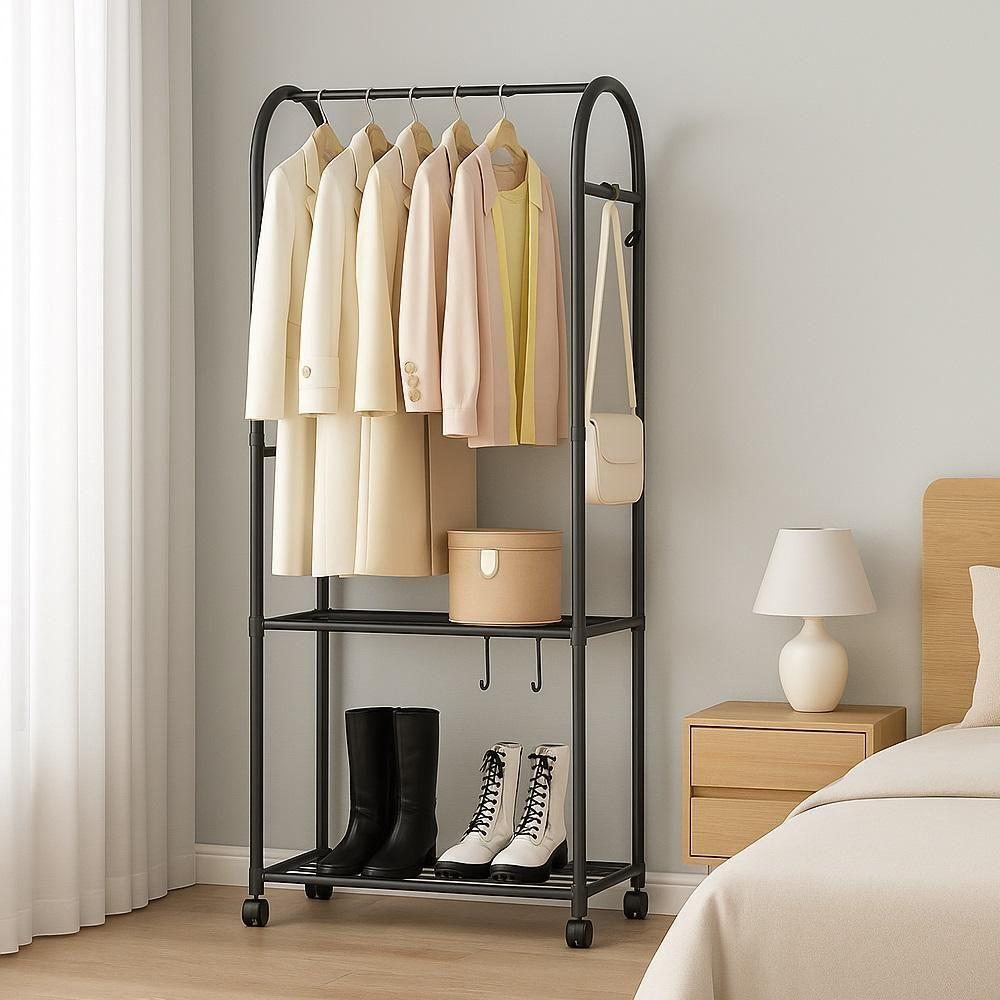 Arara Guarda Roupas Estante 2 Prateleiras Carrinho Organizador Cabideiro Quarto Vestiario SapateiraCabideiro de Metal com Prateleiras e Ganchos ? Elegante, Resistente e MultiusoOrganize suas roupas e acessórios com muito mais praticidade e estilo!O Cabideiro de Metal com Prateleiras e Ganchos possui design curvado moderno e elegante, além de oferecer alta resistência e longa durabilidade.Com capacidade para mais de 20 peças de roupas na haste superior, ele também conta com 2 prateleiras inferiores para sapatos, caixas ou outros itens, além de ganchos laterais ideais para bolsas, chapéus, cachecóis e muito mais.Diferenciais do ProdutoAlta capacidade ? suporta mais de 20 peças de roupas.Organização extra ? 2 prateleiras inferiores para armazenamento adicional.Praticidade ? ganchos laterais para acessórios e utensílios.Durabilidade garantida ? estrutura metálica com pintura de alta temperatura, resistente à abrasão, ferrugem e descascamento.Design elegante e modernoVersátil ? ideal para quartos, salas, entradas, escritórios e closets.Montagem simples ? fácil de montar e manter limpo.Medidas:Altura: 165cmLargura: 58,7cmProfundidade: 30cmConteúdo da Embalagem1 Cabideiro de Metal com Prateleiras e GanchosLeve mais organização e sofisticação para sua casa ou escritório.* Arara Guarda Roupas Estante 2 Prateleiras Carrinho Organizador Cabideiro Quarto Vestiario Sapateira: desempenho consistente e intuitivo.* Construção de qualidade com acabamento cuidadoso.* Dimensões otimizadas para melhor uso.* Peso equilibrado para fácil manuseio.* Indicado para uso em diferentes contextos.