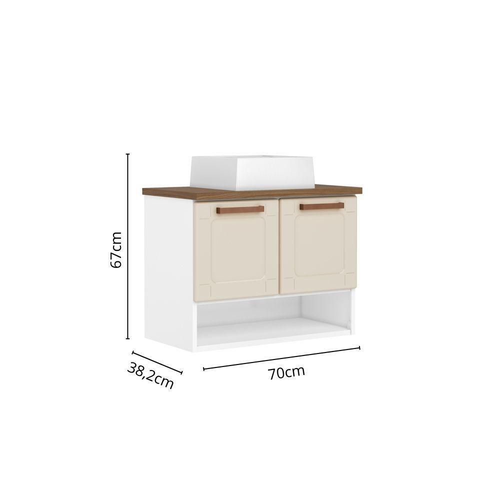Balcão De Aço Cuba E Nicho Banheiro 2 Portas Areia Bertolini Areia/Branco