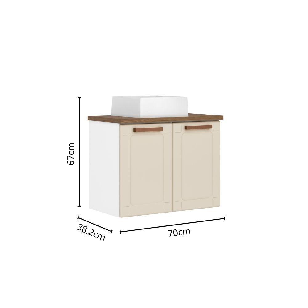Balcão De Aço E Cuba Alta Banheiro 2 Portas Areia Bertolini Areia/Branco