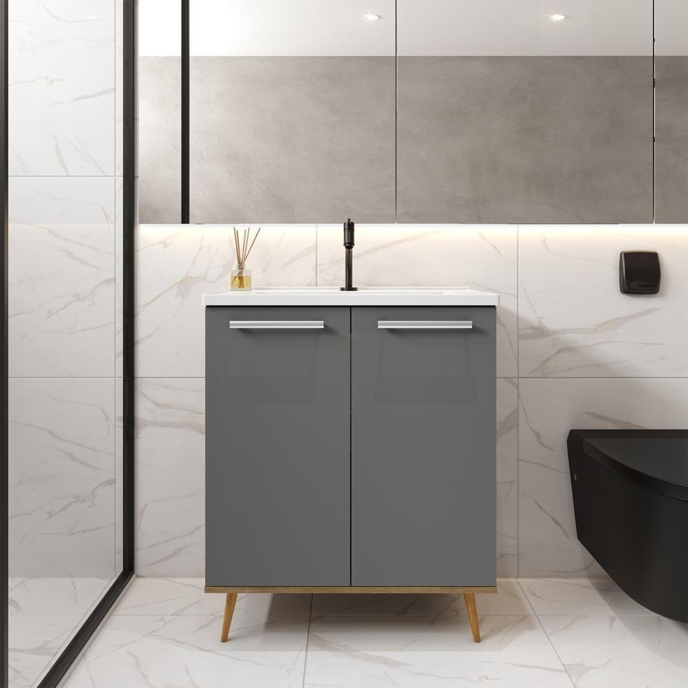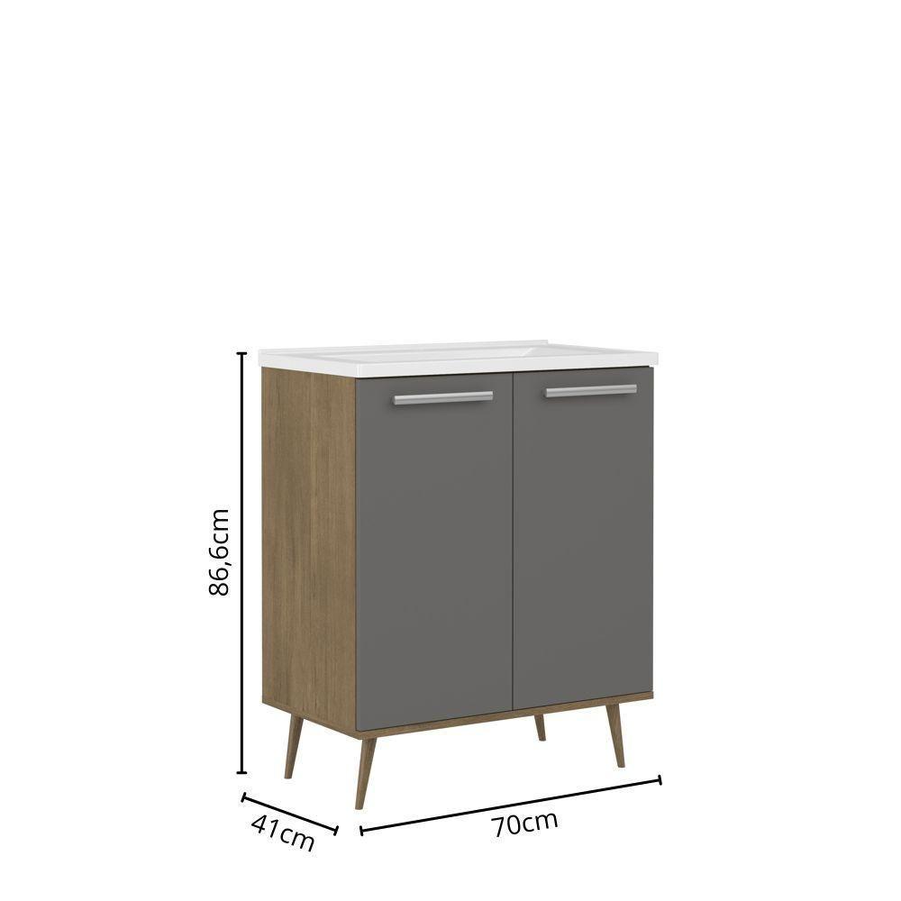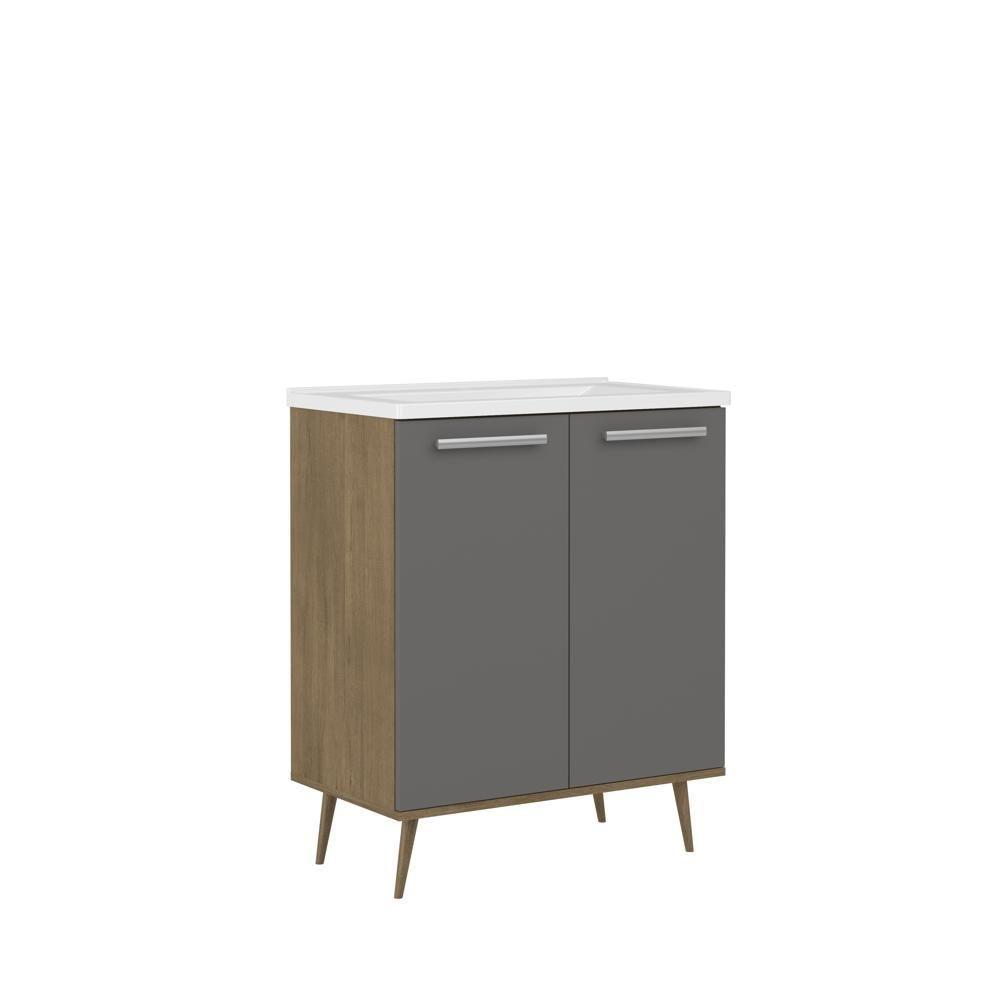 Balcão Para Banheiro Com Pia E 2 Portas Grafite Bertolini Grafite/carvalho