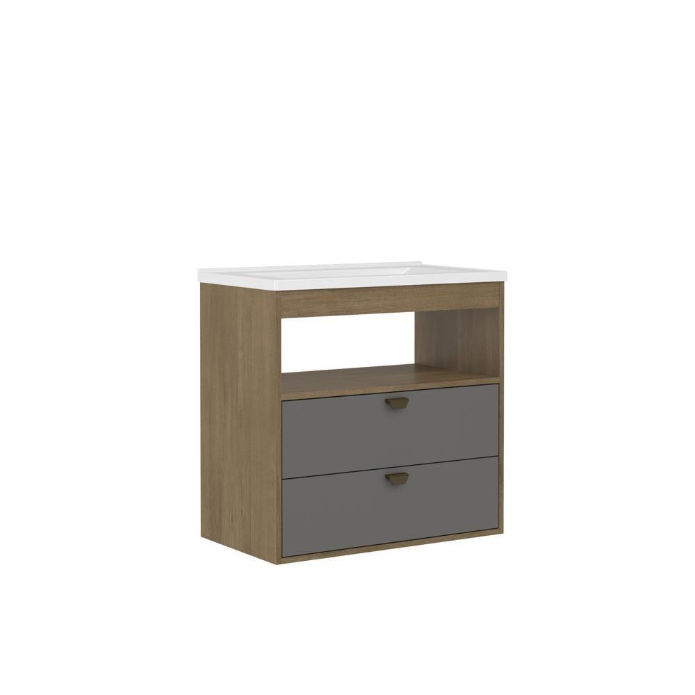Balcão Para Banheiro Com Pia E 2 Gavetas Grafite Bertolini Grafite/carvalho