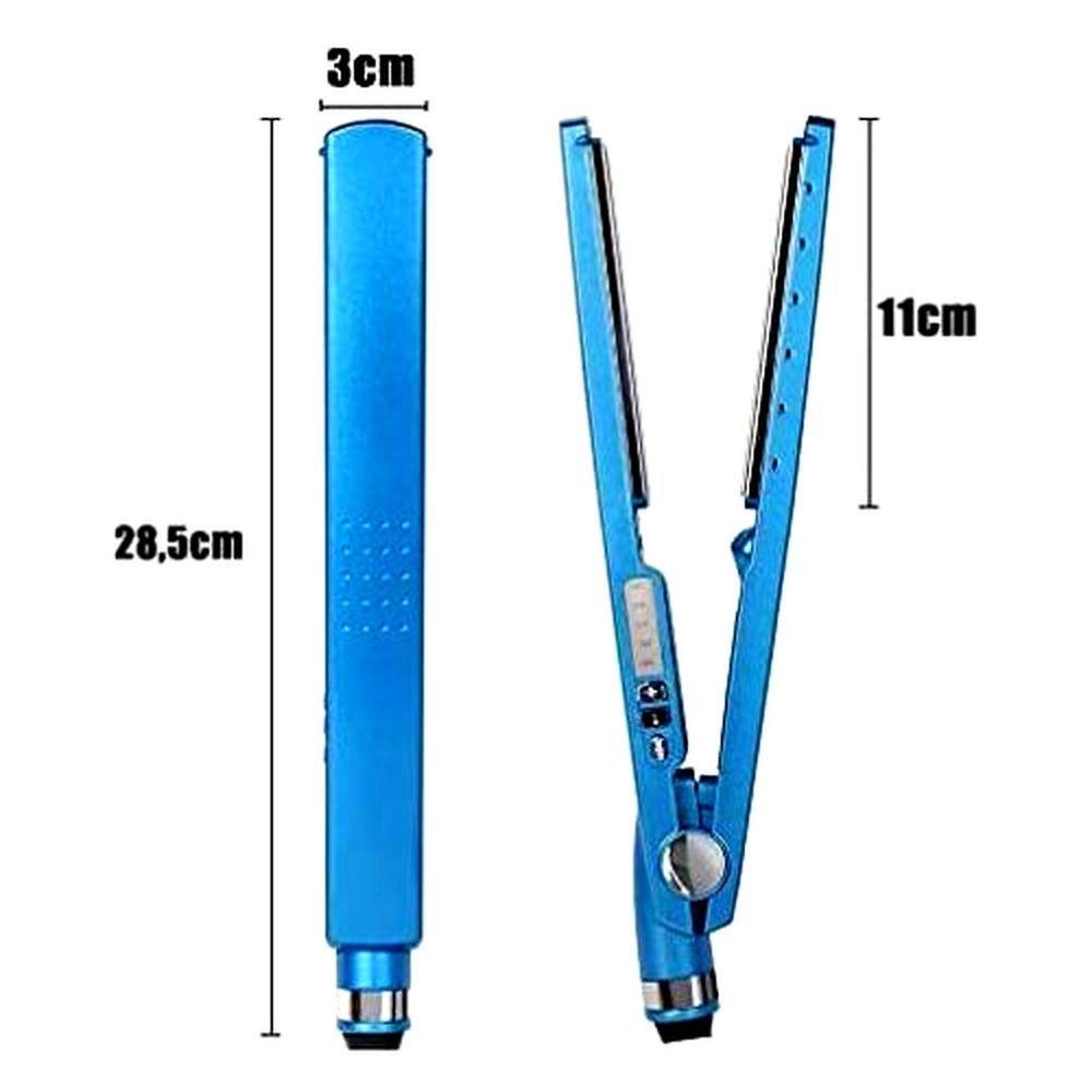 Chapinha Prancha Profissional Salão íon Titanium BivoltChapinha Prancha Cabelo Profissional Salão Nano Íon Titanium 110/220v Bivolt 450ºF Super quente Para Químicas Iônica Informações do Produto:Prancha com design moderno, placas em titânio ideal para processos químicos. Suportam temperaturas muito altas e ajudam a manter a umidade natural do cabelo e proporcionar mais brilho. Possui botão para regulagem para ajustar temperatura da prancha.Compacta e leve sendo muito conveniente para transportar, cabo longo.Material:TitaniunExclusiva tecnologia IONIC que libera milhões de íons por cm que reduzem a eletricidade e estática dos fios eliminando o Frizz.Características:Além de possuir tamanho de 32mm, que é perfeita para alisamentos e finalizações. Tecnologia MCH: faz com que as placas aqueçam mais rápido e de forma constante.Display digital com controle de temperatura, sendo a máxima 232C ou 450F.O Pacote Inclui:1prancha Titanium 450F / 232C Cor: Azul1 manual de instruções