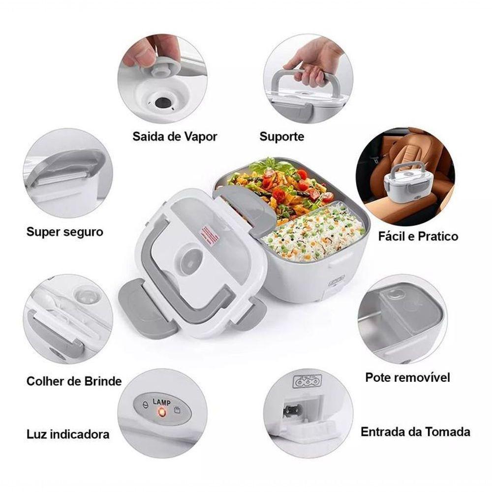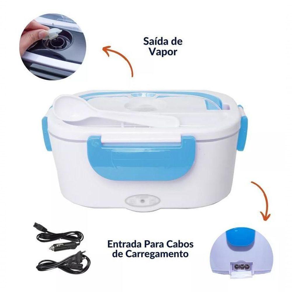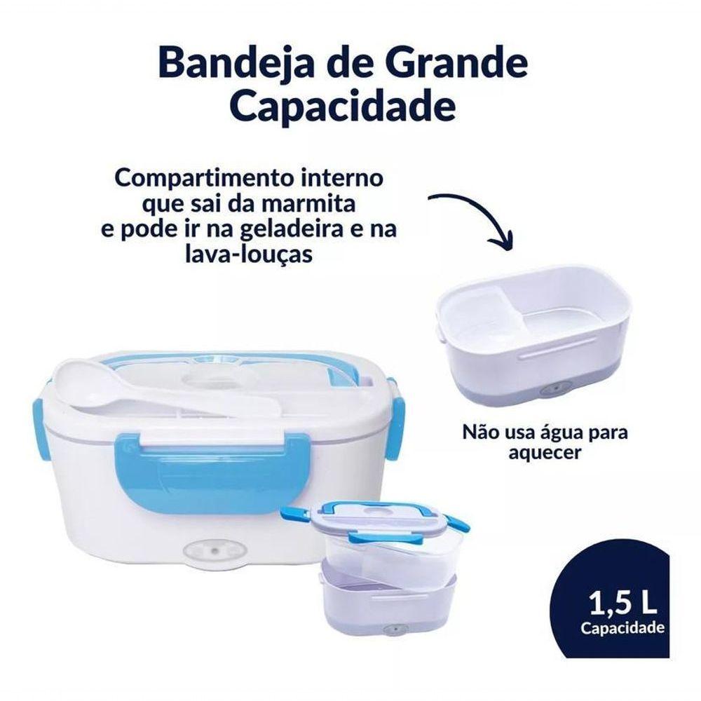 Marmita Termica Eletrica Portatil Veiculo 12v/24v AzulMarmita termica eletrica portatil veiculo 12v/24vCor: azulCaracterísticas do produto- funciona no 110v e 220v;- carrega 12v e 24v;- potência de 40w;- capacidade de 1,5 litros;Cuidados- não desmonte o produto;- evite deixar cair no chão;- não aqueça a lancheira no forno de micro-ondas;- não ligue a lancheira quando não houver comida;- não congele a lancheira na geladeira;- não mergulhar a parte inferior da lancheira (a parte de metal) em água para limpeza. Se necessário, utilize apenas um pano úmido;Ficha técnica- capacidade: 1,5 litros- potência: 40w- material: plástico- compartimentos: 2Conteúdo da embalagem- 01x marmita elétrica- 01x tomada 12/24v- 01x colher- 01x manual de uso