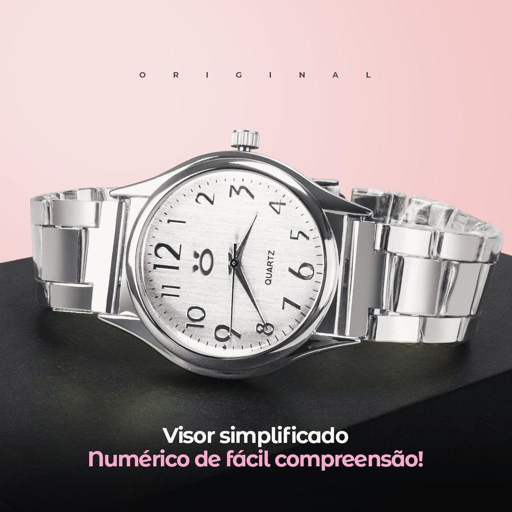 Relogio Feminino Aço Inox Qualidade Premium Coração Prata Presente Casual Social Original ModaRelógio Feminino Orizom Maria - Elegância AtemporalSe você busca um estilo refinado e detalhes exclusivos, o Relógio Feminino Orizom Maria é a escolha perfeita! Com um design sofisticado em aço todo prata e fundo branco, este relógio combina beleza externa com uma exclusiva gravura feita a laser na parte de trás, proporcionando um toque personalizado e distinto.Além disso, a pulseira prata com fecho dobrável e trava não apenas oferece um ajuste seguro e confortável, mas também adiciona um toque de refinamento, tornando este relógio adequado para diversas ocasiões, desde eventos formais até encontros casuais.Apresentado em uma linda caixa Premium, a aquisição do Orizom Maria se transforma em um momento especial desde o desembalar. Ideal para mulheres sofisticadas e estilosas, este relógio é mais do que um acessório; é uma afirmação de estilo que se adapta a diferentes estilos de vida.E não se esqueça: o Orizom Maria é também uma opção de presente excepcional para aquelas que você valoriza. Com um movimento preciso e marcadores de hora distintos, este relógio reflete o gosto refinado de quem o usa e garante pontualidade em todas as ocasiões.Adquira agora esta peça única e eleve o estilo a novos patamares de elegância e exclusividade. Afinal, pequenos detalhes do produto podem variar de acordo com a disponibilidade de estoque, por isso não perca tempo e garanta o seu!