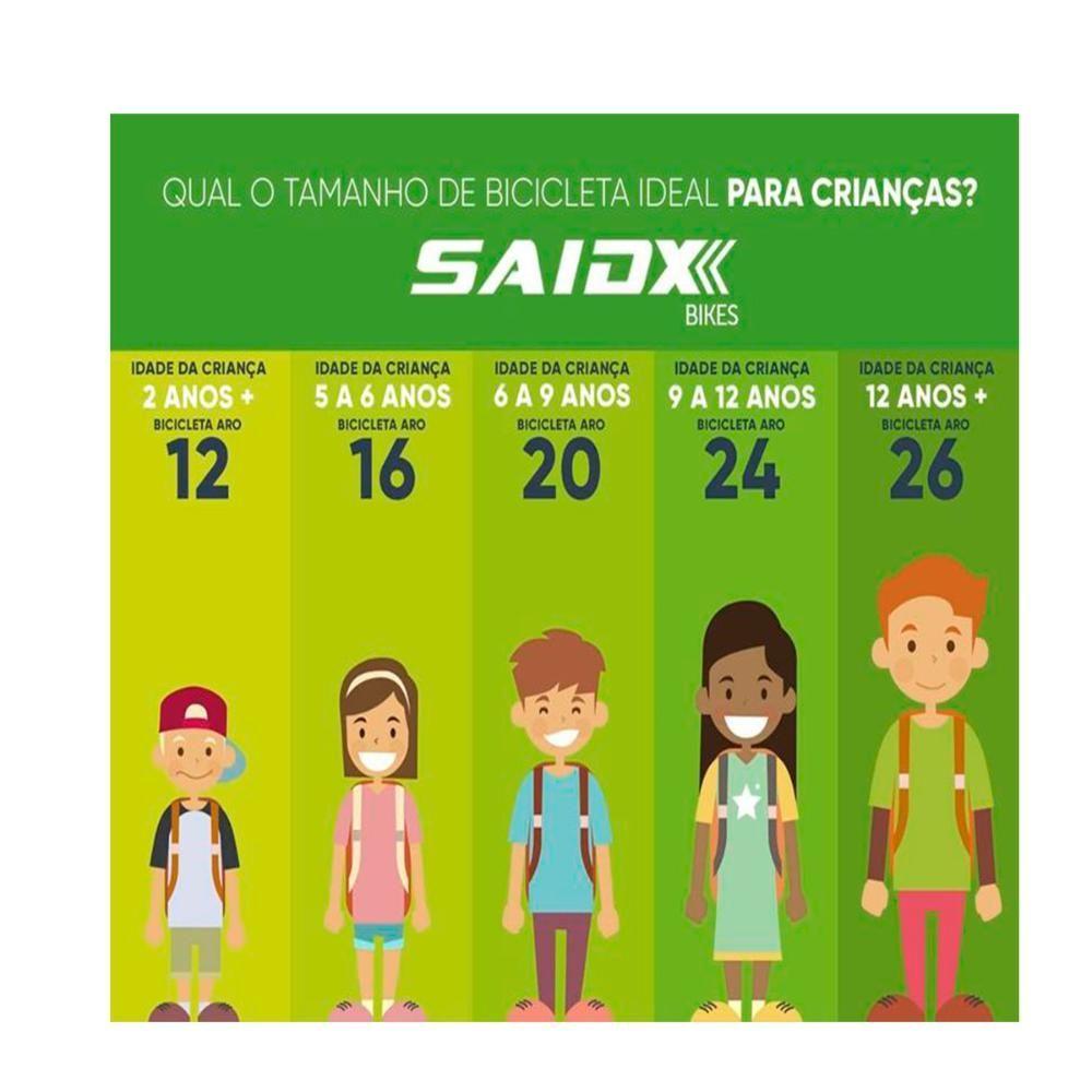 Bicicleta Aro 26 Masculina De Passeio 18 Marchas Saidx - Azul - Tu AzulQuadro 26 em aço. Guidão em aço. Canote em aço. Pedivela monobloco. Aro em alumínio natural. Roda Livre 6v. Coroa Tripla em aço. Freio V-Brake nylon. Maçaneta nylon. Alavanca cambio nylon. Pneu multi-terreno. Cambio dianteiro importado. Cambio traseiro importado. Pedal nylon mtb. Recomendações: Certifique-se do tamanho ideal antes de efetuar a compra, sugestão de tamanho por idade, na última imagem do anúncio. Montagem: A bicicleta vai montada e revisada, por motivo de acomodação na embalagem, são retirados selim, pedais, guidão e roda dianteira. A montagem final é de responsabilidade do cliente, sugerimos a mesma seja feita por uma oficina especializada (a empresa não se responsabiliza pela montagem e regulagem final da mercadoria). Garantia: 1 ano para o quadro e 3 meses para os componentes (ambos contra defeitos de fabricação). A garantia não cobre defeitos por mau uso ou pela montagem inadequada do produto. Imagem meramente ilustrativa. Marca: SAID-X | Modalidade: Passeio | Aro: 26 | Marchas: 18 | Suspensão: Sem susp | Material do quadro: Aço | Cor: AZUL