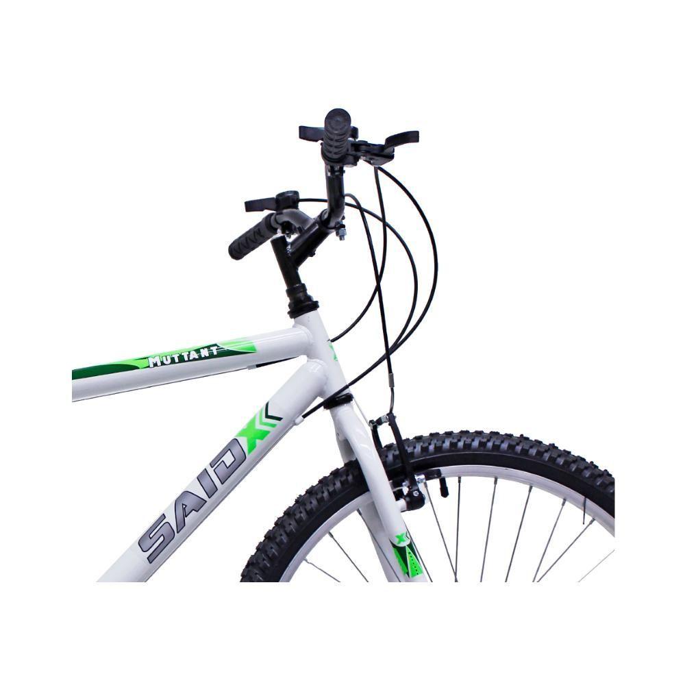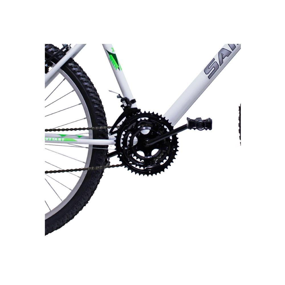 Bicicleta Aro 26 Masculina De Passeio 18 Marchas Saidx - Branca - Tu BrancaQuadro 26 em aço. Guidão em aço. Canote em aço. Pedivela monobloco. Aro em alumínio natural. Roda Livre 6v. Coroa Tripla em aço. Freio V-Brake nylon. Maçaneta nylon. Alavanca cambio nylon. Pneu multi-terreno. Cambio dianteiro importado. Cambio traseiro importado. Pedal nylon mtb. Recomendações: Certifique-se do tamanho ideal antes de efetuar a compra, sugestão de tamanho por idade, na última imagem do anúncio. Montagem: A bicicleta vai montada e revisada, por motivo de acomodação na embalagem, são retirados selim, pedais, guidão e roda dianteira. A montagem final é de responsabilidade do cliente, sugerimos a mesma seja feita por uma oficina especializada (a empresa não se responsabiliza pela montagem e regulagem final da mercadoria). Garantia: 1 ano para o quadro e 3 meses para os componentes (ambos contra defeitos de fabricação). A garantia não cobre defeitos por mau uso ou pela montagem inadequada do produto. Imagem meramente ilustrativa. Marca: SAID-X | Modalidade: Passeio | Aro: 26 | Marchas: 18 | Suspensão: Sem susp | Material do quadro: Aço | Cor: BRANCA