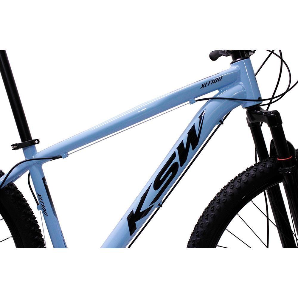 Bicicleta Aro 29 Bike Ksw Xlt 21 Marchas Alumínio Freio A Disco - Azul Claro -ad Pto - 19 Azul Claro -ad PtoA Bicicleta KSW, é a escolha perfeita para os iniciantes do mountain bike, possuindo um dos melhores Custo-benefício do mercado, e com uma qualidade surpreendente.Dentre os atributos, os que mais se destacam são: Componentes em alumínio: Torna o produto mais leve. Freios a Disco: Frenagem segura e com baixo custo de Manutenção. Suspensão Dianteira: Amortecimento que Reduz impactos durante o trajeto. Além de trazer vários benefícios para a saúde, e para a Vida!Quadro 29 A6061 KSW XLT 100 Alumínio. Abraçadeira Quadro c/ Blocagem Alumínio. Suporte de Guidão Alumínio. Canote Selim sem Carrinho Alumínio. Guidão Mtb Alumínio.Cambio Dianteiro 3v Index. Cambio Traseiro 7v Index. Alavancas Rapid Fire 21v Index.Freio a Disco Mecânico 160mm. Pedivela Aço Revestido Nylon 24/34/42D Index. Roda Livre 7v 14/28D Index. Corrente fina 7v Index.Garfo 29 Suspensão 100mm. Pneu 29 Mtb Multi-terreno. Pedal Freestyle Nylon Inglês.Cubo em aço c/ Blocagem. Aros Aero Parede Dupla. Manopla Borracha Mtb.Movimento Central Roller Selim Mtb.Peso (Tam 17): 15,83kgRecomendações: Certifique-se do tamanho do quadro antes de efetuar a compra, recomendamos que escolha o tamanho de quadro de acordo com a altura do usuário, conforme tabela da última foto do anúncio.Montagem: A bicicleta vai montada e revisada, por motivo de acomodação na embalagem, são retirados selim, pedais, guidão e roda dianteira. A montagem final é de responsabilidade do cliente, sugerimos a mesma seja feita por uma oficina especializada (a empresa não se responsabiliza pela montagem e regulagem final da mercadoria).Garantia: 1 ano para o quadro e 3 meses para os componentes (ambos contra de fabricação). A garantia não cobre por mau uso ou pela montagem inadequada do produto.Imagem meramente ilustrativa. Marca: KSW | Modelo: XLT 100 | Modalidade: Mountain Bike | suspensão: dianteira | Aro: 29 | Marchas: 21 | Cor: AZUL CLARO -AD PTO