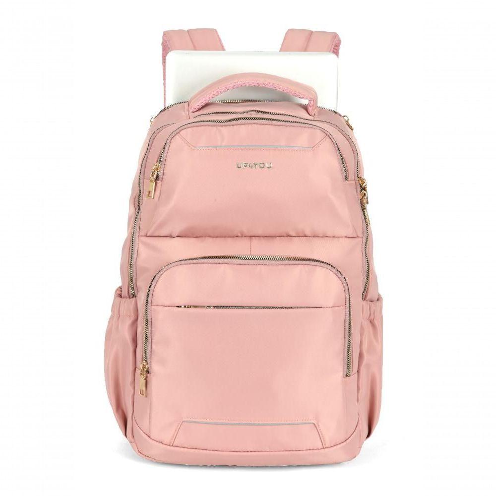M C/notebook Rose - Unico Rose A mochila de costas feminina executiva Up4You, modelo MN54142UP, faz parte da linha casual da marca e foi desenvolvida para oferecer versatilidade e sofisticação em diferentes ocasiões. Com design moderno, pode ser utilizada em viagens, reuniões ou no dia a dia de trabalho, unindo estilo e praticidade em um único modelo.Possui três bolsos frontais para fácil organização, alça carona que permite acoplar em malas de viagem e estrutura traseira em espuma, garantindo maior conforto no transporte. O logo em relevo ouro light e as alças resistentes reforçam a durabilidade e o acabamento elegante. São dois compartimentos principais, sendo um deles com espaço exclusivo para notebook e organizador interno para manter os itens bem distribuídos.Com dimensões de 46 x 33 x 16 cm, a mochila possui 18 polegadas e é classificada como grande. Para saber se o seu notebook é compatível, orientamos medir o equipamento e comparar com as medidas internas da mochila.Dicas de uso: indicada para uso executivo, acadêmico ou em viagens, é ideal para quem precisa de espaço, conforto e elegância em uma mochila funcional.Dicas de limpeza: limpar com pano úmido e sabão neutro; evitar produtos químicos, lavagem em máquina, secadoras ou ferro de passar para manter a qualidade do material e dos acabamentos. Material: Poliester | Garantia: 6 meses | Coleção: Up4you | Origem: Importados | Largura real: 33 | Gênero: Feminino | Comprimento real: 16 | Altura real: 46 | Modelo: MN54142UP | Tempo de Garantia: 6 | Tipo de Mochila: Urbana | Peso real: 0.5 Cor: Rose