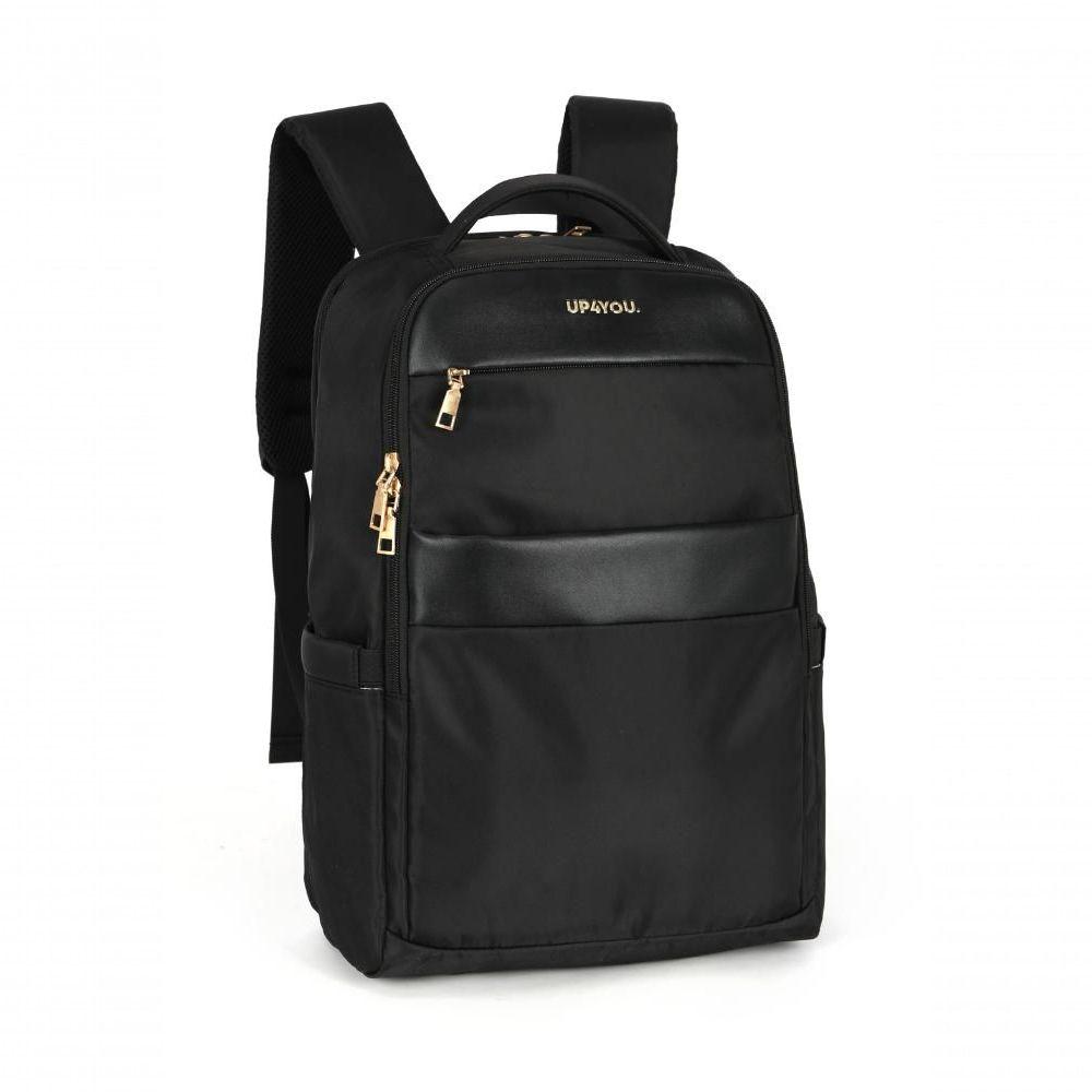 M C/notebook Preto - Unico PretoA coleção Casual Feminina Up4You traz modelos versáteis que acompanham a rotina do dia a dia, inclusive em ambientes executivos. A mochila de costas apresenta dois compartimentos principais, sendo um deles com espaço para notebook, além de dois bolsos frontais um com zíper e outro aberto livre, bolsos laterais livres e zíper personalizado da marca.Modelo: MN54141UP Com design elegante, possui logo em ouro light, alças resistentes e almofadadas para maior conforto, além de alça carona que permite acoplar facilmente em malas de viagem. Os detalhes em PU e o compartimento com organizador de objetos reforçam a praticidade e a sofisticação do modelo.Com dimensões de 44 x 31 x 18 cm, a mochila é classificada como média e possui 17 polegadas. Para confirmar se o seu equipamento é compatível, orientamos medir o notebook e comparar com as medidas internas da mochila.Dicas de uso: ideal para rotina de estudos, trabalho, viagens e compromissos do dia a dia, oferecendo praticidade e estilo em qualquer ocasião.Dicas de limpeza: limpe com pano úmido e sabão neutro; evite produtos químicos, lavagem em máquina, secadoras ou ferro de passar para manter o material em perfeito estado. Coleção: Up4you | Modelo: MN54141UP | Gênero: Feminino | Material: Poliester | Origem: Importados | Altura real: 44 | Garantia: 6 meses | Tipo de Mochila: Urbana | Tempo de Garantia: 6 | Comprimento real: 18 | Largura real: 31 | Peso real: 0.5 Cor: Preto