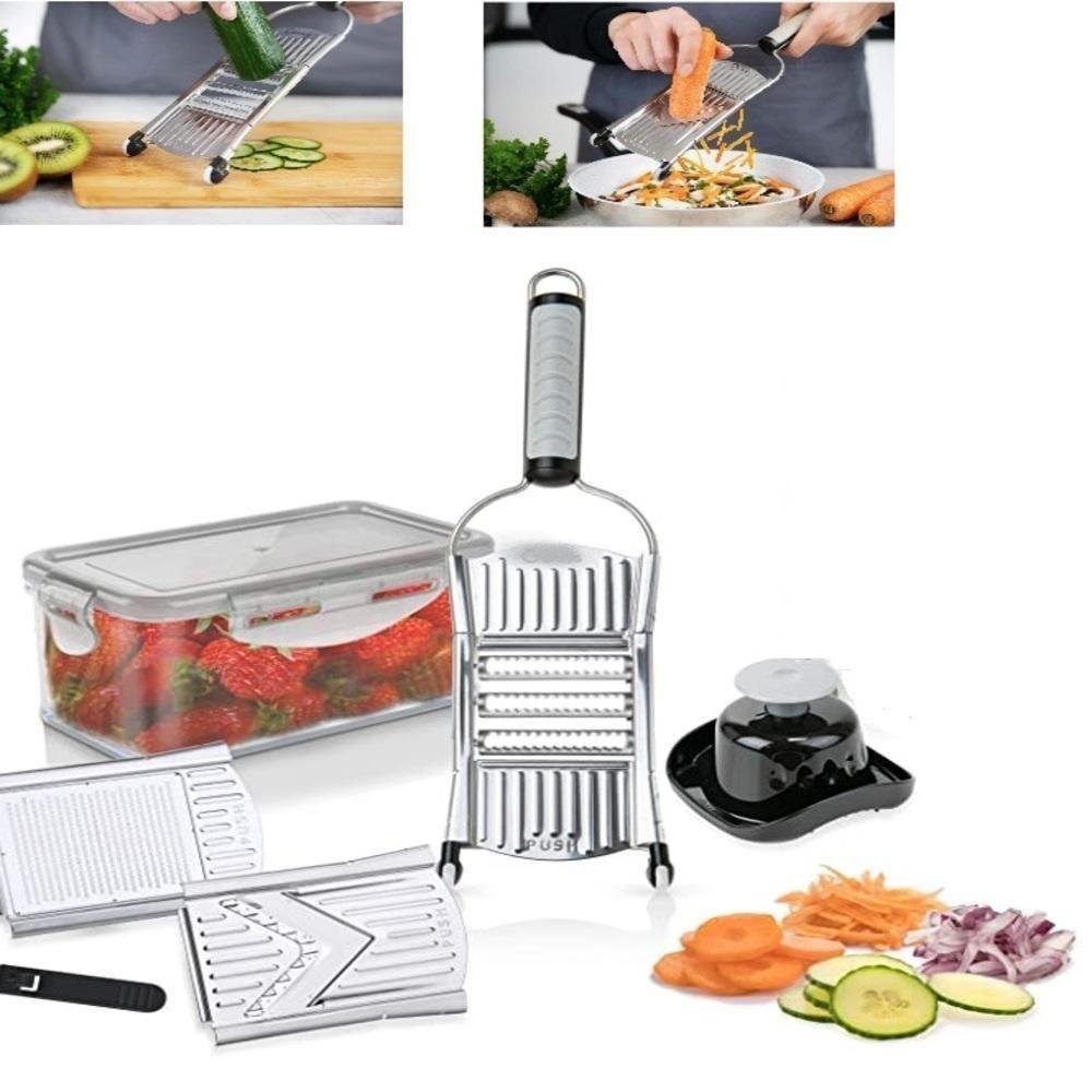 Fatiador E Cortador Multifuncional Nicer Dicer Speed Em Inox Com Pote – Kit 9 Peças Para Legumes, Queijos E Mais