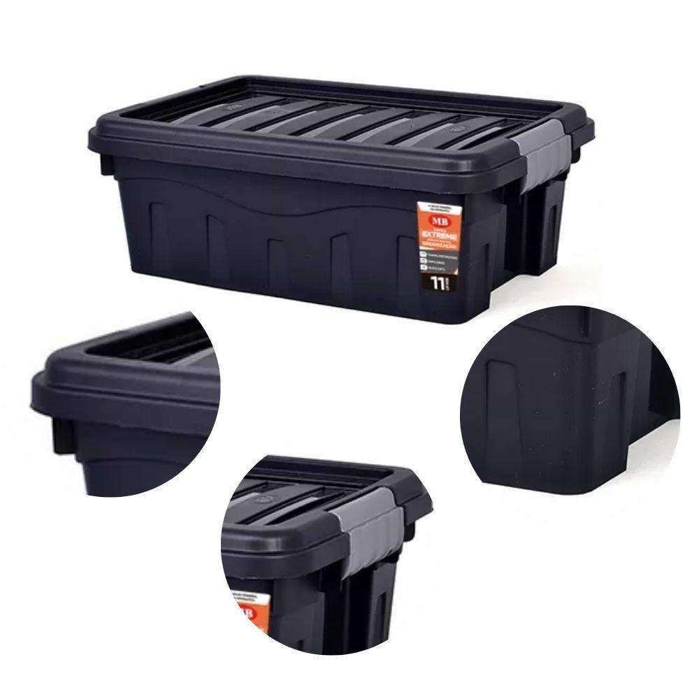 Caixa Organizadora Multiuso Empilhável 11 L Preta Com Tampa E Travas Laterais