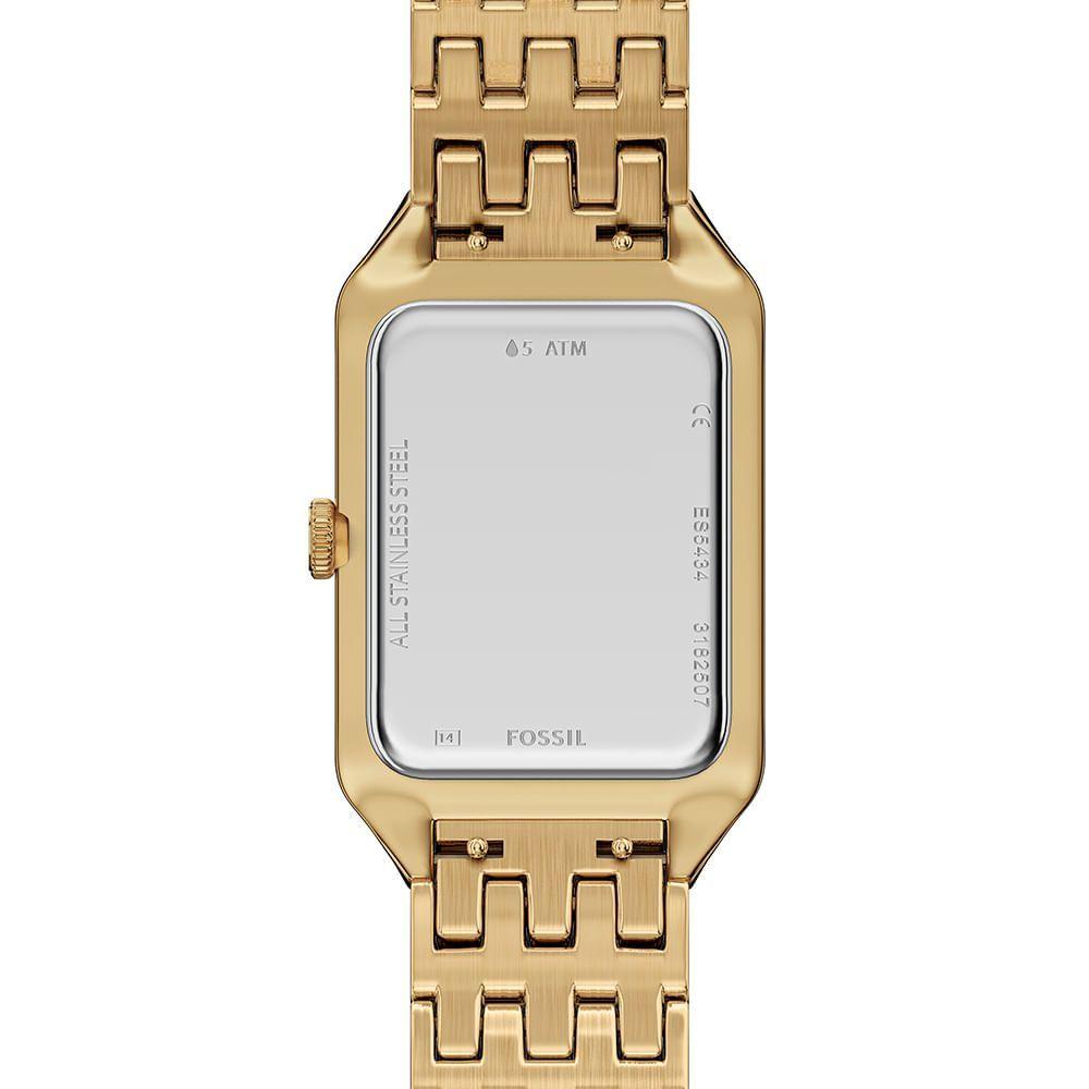 Relógio Fossil Feminino Raquel Dourado - Es5434/1pn Relógio Fossil Feminino Fossil Fem - Es5434/1pnEste relógio em tom dourado apresenta uma caixa retangular de aço inoxidável combinada com uma pulseira de aço inoxidável correspondente, criando um design coeso. O mostrador preto com acabamento acetinado adiciona profundidade e contraste, sendo complementado por um movimento de três ponteiros e função de data para maior funcionalidade.Gênero - FemininoSobre o Mecanismo - AnalógicoLargura da Caixa (cm) - 2,3Formato da Caixa - RetangularMaterial da Caixa - AçoCor do Mostrador - DouradoCor da Pulseira - DouradoMaterial da Pulseira - AçoCor da Caixa - Douradoplaintext_description_meli - Relógio Fossil Feminino Raquel Dourado - ES5434/1PNEste relógio em tom dourado apresenta uma caixa retangular de aço inoxidável combinada com uma pulseira de aço inoxidável correspondente, criando um design coeso. O mostrador preto com acabamento acetinado adiciona profundidade e contraste, sendo complementado por um movimento de três ponteiros e função de data para maior funcionalidade.meli_title - Relógio Fossil Feminino Raquel Dourado - ES5434/1PNModelo_ML - Relógio Fossil Feminino Raquel Dourado - ES5434/1PNCor - DouradoTamanho - PequenoGênero - Feminino