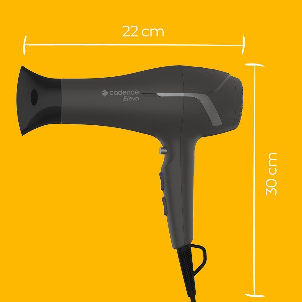 Secador De Cabelos Cadence Eleva 110VEleve o cuidado com os seus cabelos. Secador Eleva.- São até 2200W de potência, eficiência e conforto, para conferir mais agilidade e rapidez na secagem e modelagem, perfeito para quem vive um dia a dia corrido. O Secador Eleva Cadence conta com motor DC, que é mais econômico e silencioso, sem abrir mão da performance. Com 2 velocidades e 3 temperaturas, permite combinações ideais para todos os tipos de cabelo, e ainda traz a precisão do bocal concentrador, grade removível para limpeza e cabo de 1,60 m para maior liberdade de movimento durante o uso.Destaques do Produto:Motor DC - Mais eficiente e econômico.2 velocidades e 3 temperaturasBocal concentrador: Mais precisão e controleAté 2200W: Agilidade e rapidez para secar e modelar.Eficiência energética, potência e durabilidade.Dica de uso: Limpe a grade removível regularmente para manter a performance do seu secador Eleva.Informações adicionais:Cabo de 1,60 m;Grade removível para limpeza1 ano de garantiaSegurança SGSSão até 2200W de potência, eficiência e conforto, para conferir mais agilidade e rapidez na secagem e modelagem, perfeito para quem vive um dia a dia corrido. O Secador Eleva Cadence conta com motor DC, que é mais econômico e silencioso, sem abrir mão da performance. Com 2 velocidades e 3 temperaturas, permite combinações ideais para todos os tipos de cabelo, e ainda traz a precisão do bocal concentrador, grade removível para limpeza e cabo de 1,60 m para maior liberdade de movimento durante o uso.São até 2200W de potência, eficiência e conforto, para conferir mais agilidade e rapidez na secagem e modelagem, perfeito para quem vive um dia a dia corrido. O Secador Eleva Cadence conta com motor DC, que é mais econômico e silencioso, sem abrir mão da performance. Com 2 velocidades e 3 temperaturas, permite combinações ideais para todos os tipos de cabelo, e ainda traz a precisão do bocal concentrador, grade removível para limpeza e cabo de 1,60 m para maior liberdade de movimento durante o uso.MOTOR DCMais eficiente e econômico2 VELOCIDADES3 temperaturasBocal concentradorMais precisão e controleAté 2200WAgilidade e rapidez para secar e modelarMOTOR DCMais eficiente e econômico2 VELOCIDADES3 temperaturasBocal concentradorMais precisão e controleAté 2200WAgilidade e rapidez para secar e modelarDados Técnicos:Modelo: SEC565-127 / SEC565-220Tensão: 127W / 220WCódigo Produto: SEC565Potência: 127V: 2000 W: 220V: 2200Consumo: 2,2kWHDimensões [LxAxP]: 220x300x100mmPeso: 2,2kWHCódigo de barras: 7898742841219 / 7898742841226Garantia (meses): 12