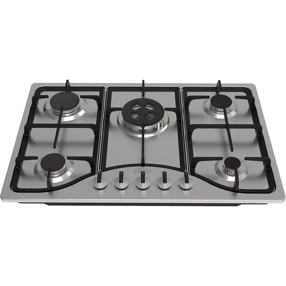 Kit Inox Cooktop a Gás 5 Bocas e Forno de Embutir 74L - 220VEsse kit contém os seguintes itens:1. Cooktop a Gás Inox 5 Bocas Oster Semiprofissional - OTOP701Sirva-se de bom gosto e praticidade.Faça a diferença na cozinha utilizando o Cooktop Semiprofissional Oster, um produto com alta durabilidade.Queimador triplo e eficiência na medida certa: Ganhe mais praticidade e agilidade para fazer receitas incríveis.Semiprofissional e alta durabilidade: Alto desempenho para todas as suas receitas. Com mesa de inox e trempes de ferro fundido, o Cooktop Oster foi desenvolvido para durar e acompanhar a sua rotina.Queimador italiano: Os queimadores dos cooktops Oster são de origem italiana, reconhecidos por qualidade, eficiência e segurança. Possuem sistema Flameout Safety Protection, que corta automaticamente o gás caso a chama apague.5 tamanhos de queimadores: Queimadores de última geração com características distintas:1 queimador ultrarrápido com tripla chama: 4000W1 queimador rápido: 3000W2 queimadores médios: 1750W cada1 queimador auxiliar especial: 900WPotência total: 11400WAcendimento automático: Acende a chama ao girar o botão.Estrutura para gás de botijão (GLP): Caso sua residência possua rede de gás natural (GN), adquira o kit de conversão no ato da compra. Consulte o manual de instruções ou uma assistência técnica autorizada para informações sobre conversão.Veja o manual de instruções e confirme as condições para instalação elétrica.Dimensões [LxAxP]: 760 x 108 x 508 mmSelo de Segurança: OCP SGSGarantia: 12 meses2. Forno de Embutir Elétrico Oster Semi Digital Black Inox 74L - OFOR7491Design sofisticado para sua cozinha. Qualidade e tecnologia para suas receitas.Com o novo Forno Semi Digital de embutir da Oster, você poderá preparar todas as suas receitas preferidas.74 litros de capacidade e 9 funções pré-programadas: Garantem o preparo perfeito do alimento.Timer programável de 10 horas: Desligamento automático e programações para até 10 horas, inclusive ligar e desligar. Programe com segurança o horário de início e término do preparo.Sinal sonoro: Avisos para acompanhamento da receita.Função Eco: Eleva a temperatura do forno vagarosamente, aquecendo o alimento por igual e economizando energia.Assa por convecção: Tecnologia que distribui o calor uniformemente, assando o alimento de maneira rápida e uniforme — ideal para frangos inteiros e outras proteínas.Painel Semi Digital: Visual moderno com mais tecnologia e precisão durante o uso.Ajuste de altura e bandeja coletora: 5 opções de altura para posicionar a grade conforme o recipiente utilizado. A bandeja coletora facilita a limpeza após o preparo.Dimensões [LxAxP]:595 x 595 x 595 mm (sem contar a alça da porta)595 x 595 x 623 mm (contando com a alça da porta)Selo de Segurança: OCP SGSGarantia: 12 meses
