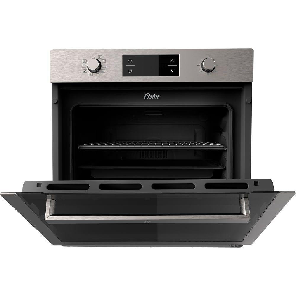 Kit Inox Coifa De Ilha 90cm E Forno De Embutir 75L 220VEsse kit contém os seguintes itens:Coifa de Ilha Oster Inox Touch Control 90cm - OCFA590Seus eletrodomésticos e móveis mais protegidos contra a fumaça e a gordura dos alimentos. A nova Coifa de Ilha Oster é tudo de bom, design sofisticado, alto poder de sucção e exclusivo Duplo Painel Touch Control em ambos os lados, que trazem mais praticidade e agilidade a você. É a coifa perfeita para a sua cozinha.Duplo Painel Touch Control: Para você ligar e programar de ambos os lados da coifa, com design sofisticado e acabamento em vidro temperado.Alto poder de sucção: Alta potência e eficiência que garantem um dos maiores poderes de sucção da categoria – 1400m3/hora (1400m3/h na função exaustor e 500m3/h na função depurador).Iluminação em Led: As 4 lâmpadas em LED favorecem a visualização dos alimentos durante o seu preparo.3 velocidades: Regule a sucção conforme o alimento que você está preparando; isso manterá o ambiente livre de mau cheiro.Dupla Função: Pode ser instalada e utilizada como exaustor ou depurador de ar.Altura Regulável: Ajuste o duto flexível de acordo com a instalação da sua cozinha. Tamanho ideal para fogões de até 6 bocas.Triplo filtro de alumínio lavável e filtro de carvão ativado: Eficiente para reter fumaças e odores, prático de retirar e fácil de lavar.Dimensões [LxAxP]: 900 x 625-1110 x 500 mmSelo de Segurança: OCP SGSGarantia (meses): 12Forno de Embutir Elétrico Oster Semi Digital Black Inox 75L - OFOR7591Inove nas suas receitas. Renove a sua cozinha! Revolucione as suas receitas com o novo Forno Elétrico de Embutir Oster. Com o sistema de convecção, o forno oferece circulação de ar e melhor distribuição da temperatura, além da possibilidade de programação automática para até 24 horas, que traz muita praticidade para cozinhar.Painel Semi Digital: Visual moderno, mais tecnologia e precisão durante o uso.Programação Automática: São 9 programações de receitas que vão trazer mais praticidade e precisão aos seus preparos.Assa por Convecção: Tecnologia que distribui o calor, assando o alimento de maneira uniforme e muito mais rápido. Ao acionar esta função, você pode preparar proteínas como frangos inteiros garantindo um resultado uniforme.Timer programável de 24 horas: Desligamento automático e programações para até 24 horas, inclusive Ligar e Desligar. Assim, você pode programar o seu preparo com segurança, sabendo o horário que ele vai iniciar e terminar. Segurança, praticidade e eficiência.Sinal Sonoro: Receba avisos para o acompanhamento da sua receita.Porta e vidro destacáveis: Retire a porta e o vidro triplo para higienização interna; mais praticidade, limpeza e segurança.75 litros de capacidade: Tamanho ideal para preparar diferentes tipos de receitas, de sobremesas a assados.Ajuste de altura e bandeja coletora: Posicione a grade de acordo com o resultado desejado. A bandeja coletora garante facilidade para a limpeza.Dimensões [LxAxP]:595 x 595 x 575 mm (profundidade sem contar a alça da porta)595 x 595 x 625 mm (profundidade contando com a alça da porta)Selo de Segurança: OCP SGSGarantia (meses): 12