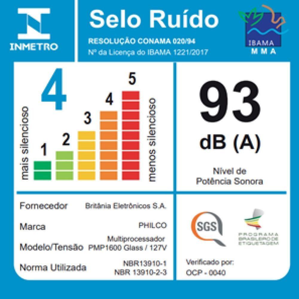 Multiprocessador Philco 9 em 1 1400W PMP1600P Glass Turbo 110V