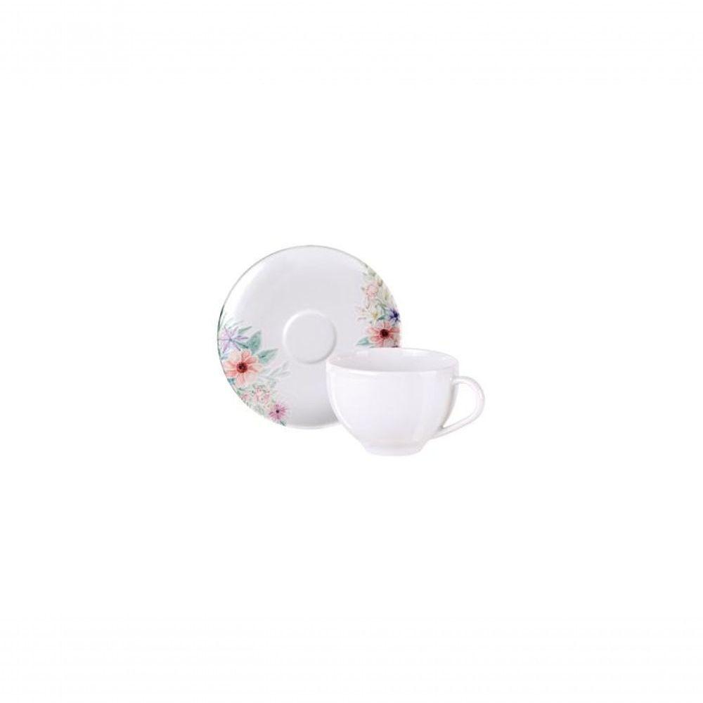 Conjunto Xícara E Pires De Chá Tramontina Floratta 250ml 2 Peças Porcelana Decorada
