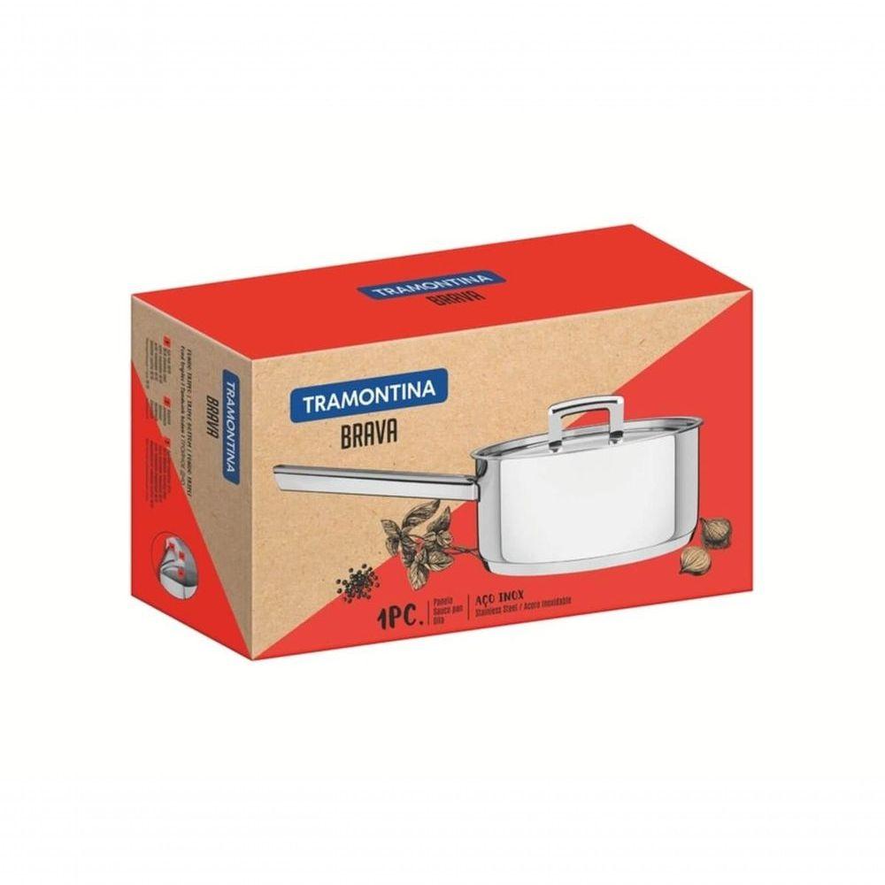 Panela Tramontina Brava 20cm Em Aço InoxPerfeita para quem aprecia a misturade traços modernos com a elegância do clássico aço inox. Esta é a proposta dalinha Brava, com panelas ideais para aquelas comidinhas tradicionais do dia adia.Recomendações de Uso:Antes do uso: remova as eventuais etiquetas e lave-a com água quente, detergente e esponja macia. Outros tipos de produto como palha de aço, poderão riscar ou prejudicar o acabamento da peç de uso: não deixe a panela vazia sobre uma fonte de calor. Use uma fonte de calor brando para evitar que o alimento grude no fundo da panela. O fundo triplo distribui uniformemente o calor, não sendo necessário o fogo alto. E, além disso, economiza energia. Quando a panela for utilizada no fogão a gás, a chama não deve ultrapassar a base da panela. No caso de uso de chapa elétrica, a chapa deverá ter diâmetro igual ou inferior ao da panela. Sempre dissolva o sal em água fervendo ou com os alimentos, mexendo os ingredientes no início do cozimento. Não aqueça o alimento colocando uma panela do mesmo diâmetro sobre a outra. Esse procedimento é perigoso, pois cria vácuo e impossibilita a retirada do mesmo. Se a tampa da panela ficar presa pelo efeito do vácuo durante o resfriamento, basta puxar ou aquecer novamente até neutralizar o efeito do vácuo. O cabo de inox aquece durante o cozimento. Aconselhamos o uso de luvas durante o manuseio. Alguns alimentos que possuem amido, como massa e arroz, poderão deixar manchas na parte interna da panela durante o cozimento. Deixe panelas quentes somente em superfícies resistentes ao calor. Pode ir ao forno em temperatura máxima de 260°C, podendo haver mudança na coloraçãós o uso: para remover facilmente as manchas, passe um pano umedecido com suco de limão ou vinagre. Evite deixar alimento na panela por muito tempo o sal também pode provocar manchas. Para que a panela de aço inox fique sempre bonita e com brilho, recomendamos que seja lavada somente com detergente e esponja. Depois da lavagem, sempre que possível, enxágue a panela com água quente e seque-a imediatamente, para que ela mantenha o brilho , pois o cloro e as substâncias contidas na água podem deixar manchas na panela. Não guarde a peça em locais úmidos. A umidade também provoca manchas. Para manter o brilho, a Tramontina desenvolveu uma pasta especial para polir e remover manchas nos produtos de aço inox, que está disponível nos principais pontos de venda (94537000).- Foto meramente ilustrativa.Informações Adicionais:- Totalmente feita de aço inox, por isso não solta nenhum resíduo nos alimentos, mantendo-os saudáveis.- Altamente durável, mantém suas características , preservando a beleza, a higiene e a durabilidade do material.- O fundo triplo (aço inox + alumínio + aço inox) distribui o calor uniformemente, proporcionando um cozimento mais rápido e uniforme, economizando energia e deixando os alimentos aquecidos por mais tempo.- Pode ir ao forno para gratinar ou finalizar pratos, na temperatura máxima de 260°C.- Acabamento em alto brilho.- desenho limpo e sem cantos Torna a limpeza mais fácil.- Tampa com saída de vapor e encaixe perfeito.- Pode ser utilizada em fogão a gás, elétrico, vitrocerâmico e indução.- Pode ser lavada diariamente Na máquina de lavar louças.