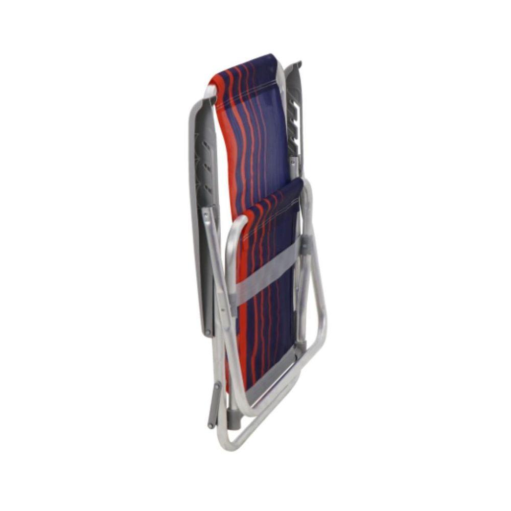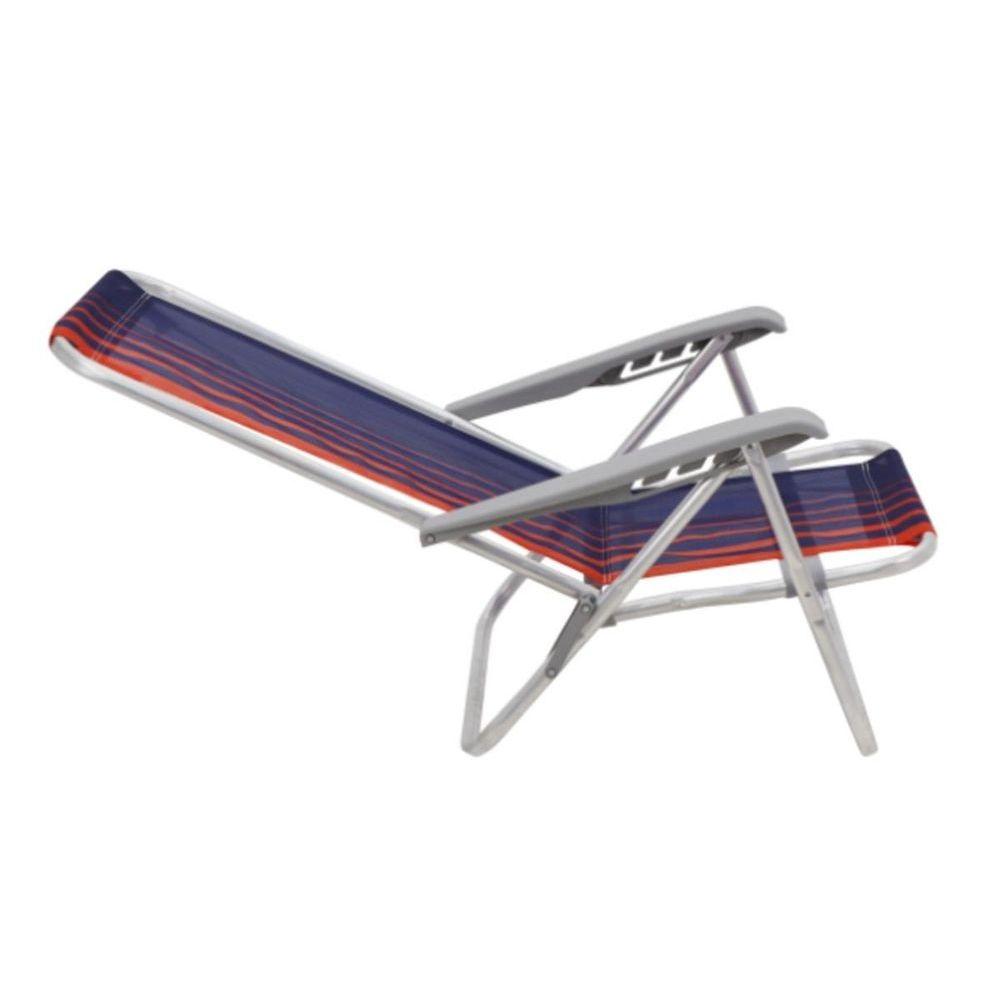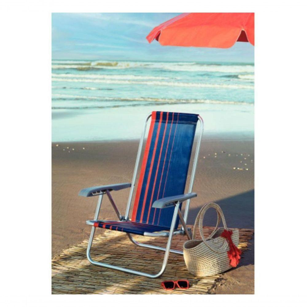 Cadeira De Praia Reclinável Tramontina Bali Baixa Em Alumínio Com Assento Azul Escuro E LaranjaPara curtir momentos deliciosos ao sol, conte com a cadeira de praia reclinável Tramontina Bali baixa em alumínio com assento azul escuro e laranja. Perfeita para momentos de lazer na praia, piscina ou acampamento, ela tem capacidade para 100 quilos e possui um regulador de encosto com quatro posições diferentes, o que garante maior conforto e bem-estar para suas horas de descanso. A estrutura da cadeira é em alumínio, seu acabamento é todo na cor cinza e sua tela é na cor azul escuro e laranja, o que garante uniformidade visual, modernidade e exclusividade no design, que é inspirado na ilha de Bali!Recomendações de Uso:Modo de Uso: Higienizar com sabão neutro e esponja macia, evitar produtos abrasivos. ;Prestar atenção especial à remoção de quaisquer vestígios de areia ou sal. ;Assegurar que o produto ficou completamente seco depois de lavá-lo. A umidade prolongada pode provocar a aparição de mofo. ;Para prolongar a vida útil do produto manter guardado quando não estiver em uso. ;Longas exposições ao sol podem provocar manchas ou perda da cor do produto. ;Retirar o produto do ambiente sempre que for higienizar o piso, ;alguns materiais de limpeza podem causar danos em com a peça.Informações Adicionais:- Modelo: Dobrável;- Não ficar em pé sobre o assento;- Transportar sempre com cuidado;- Regulador de posição (4 posições);- Peso Máximo Recomendável: 100 kg;- Fabricação: Apoios em polipropileno injetado, tubo em alumínio natural e tela em polietileno com proteção ANTI-UV.- Foto meramente ilustrativa. ;