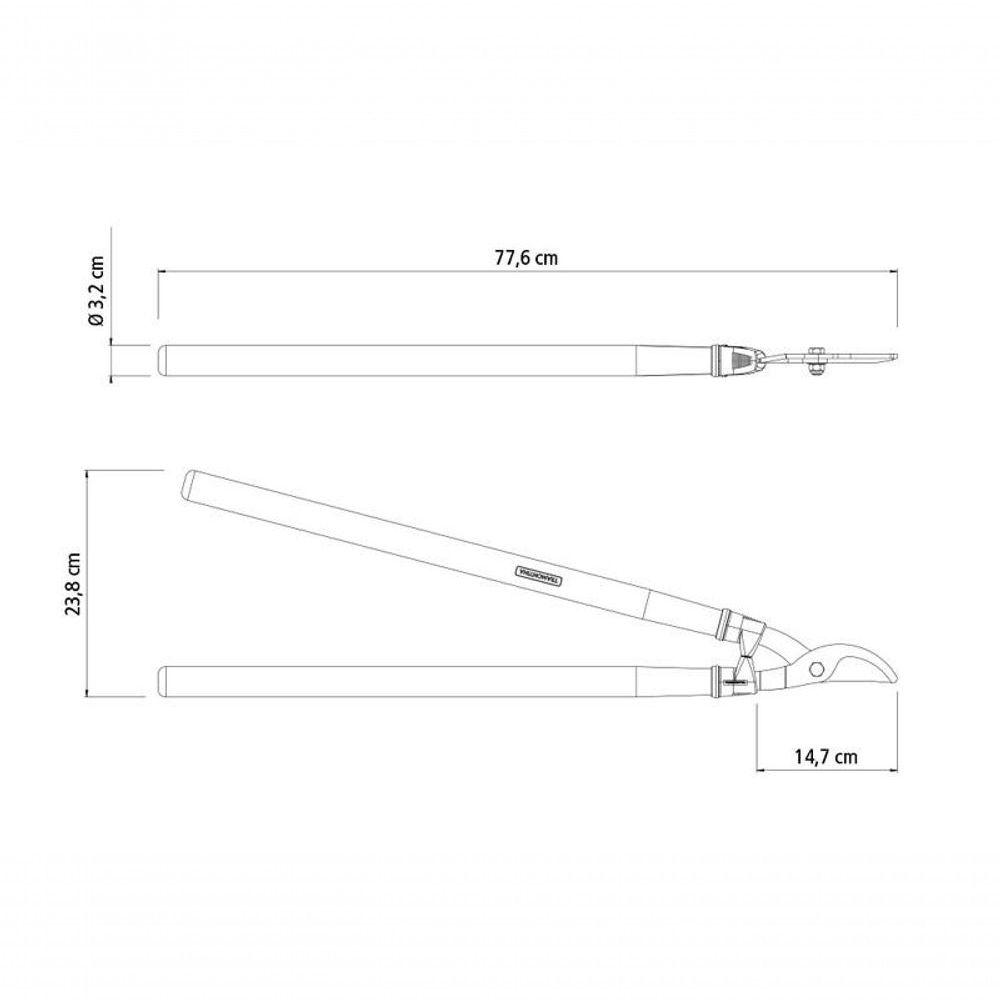 Tesourão De Poda Tipo Bypass Tramontina Em Aço Com Cabo De Madeira 60cmVocê não precisa ter dificuldades para cortar galhos mais grossos ou de difícil acesso na hora de cuidar do jardim. O tesourão de poda tipo bypass Tramontina em aço com cabo de madeira 60 cm foi desenvolvido para tornar esse trabalho muito mais fácil e eficiente. Com cabo longo, ele alcança galhos mais altos ou localizados no interior da copa da árvore, enquanto sua lâmina afiada e de alta qualidade reduz o esforço necessário para o corte. Assim, você garante maior precisão, praticidade e um acabamento impecável nas suas podas.Recomendações de Uso:Modo de uso: Destinada a poda de galhos mais grossos ou duros e galhos altos ou de difícil acesso. ;O corte deve ser limpo, a 6 mm da união do brote. Conservar a ferramenta limpa, secando-a depois de lavá-la. Aplique fina camada de óleo sobre as lâminas e articulações. Lâmina é afiada, o ; pode resultar em lesões. Manuseie com cuidado e mantenha fora de alcançe das crianças. Para descarte dos produtos e embalagens siga as orientações de reciclagem vigentes.- Foto meramente ilustrativa.Informações Adicionais:- Batente plástico;- Cabos de madeira com 60 cm;- Eficiente para galhos com diâmetro até 30 mm;- Lâminas em aço carbono temperado para um corte preciso e macio;- Lâmina Bypass (corte cruzado). Indicado para galhos verdes. Durante o corte, ocorre o cruzamento entre lâmina e contra-lâmina. Possibilita um corte preciso e sem rebarbas, que não deixa marcas no galho e facilita a cicatrização.
