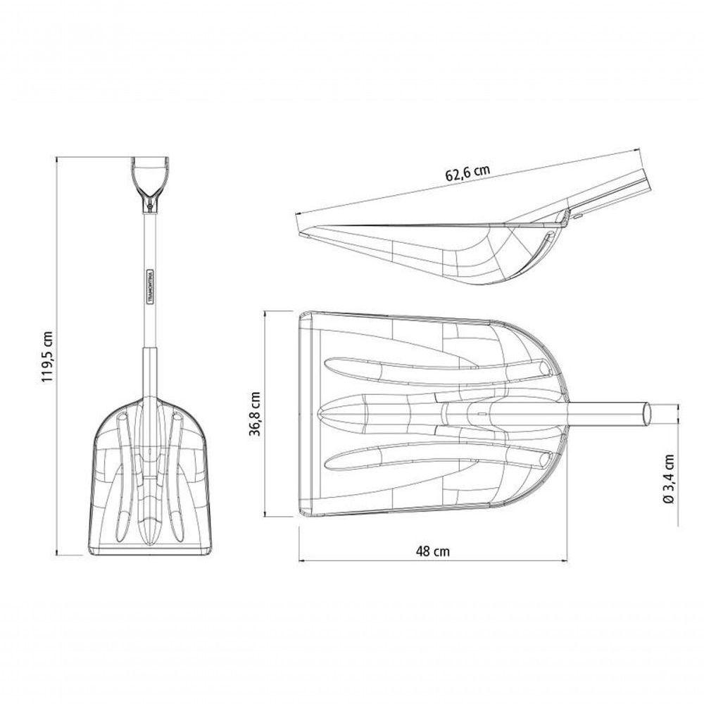 Pá Tramontina Em Plástico Com Cabo De Madeira 79cmA pá Tramontina em plástico com cabo de madeira 79 cm com empunhadura plástica reta ergonômica é a opção ideal para quem busca praticidade e conforto no trabalho. Leve e resistente, é produzida em plástico de alta qualidade e conta com cabo de madeira de 79 centímetros, equipado com empunhadura plástica que garante firmeza e ergonomia no manuseio. Perfeita para tornar suas atividades mais fáceis e eficientes.Recomendações de Uso:Modo de uso: Utilizada na agricultura, horticultura e silvicultura. Ideal para movimentação de materiais corrosivos e materiais como grãos, ração, sal, gelo e serragem. ;Para descarte dos produtos e embalagens siga as orientações de reciclagem vigentes.- Foto meramente ilustrativa.Informações Adicionais:- Lâmina resistente à oxidação;- Possui empunhadura plástica ergonômica;- A pá é fabricada em plástico de alta resistência;- Produto leve, que gera menos esforço físico do usuário e torna o trabalho mais prazeroso;- O cabo de 79 cm desta ferramenta, além de possuir ótima resistência, é produzido com madeira de origem renovável;- Cabo com acabamento envernizado, para um melhor acabamento e apresentação do produto. A camada protetora em verniz incolor realça sua tonalidade, concedendo brilho e um toque mais liso ao produto.