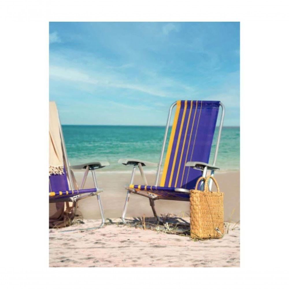 Cadeira De Praia Reclinável Tramontina Bali Baixa Em Alumínio Com Assento Roxo E Amarelo