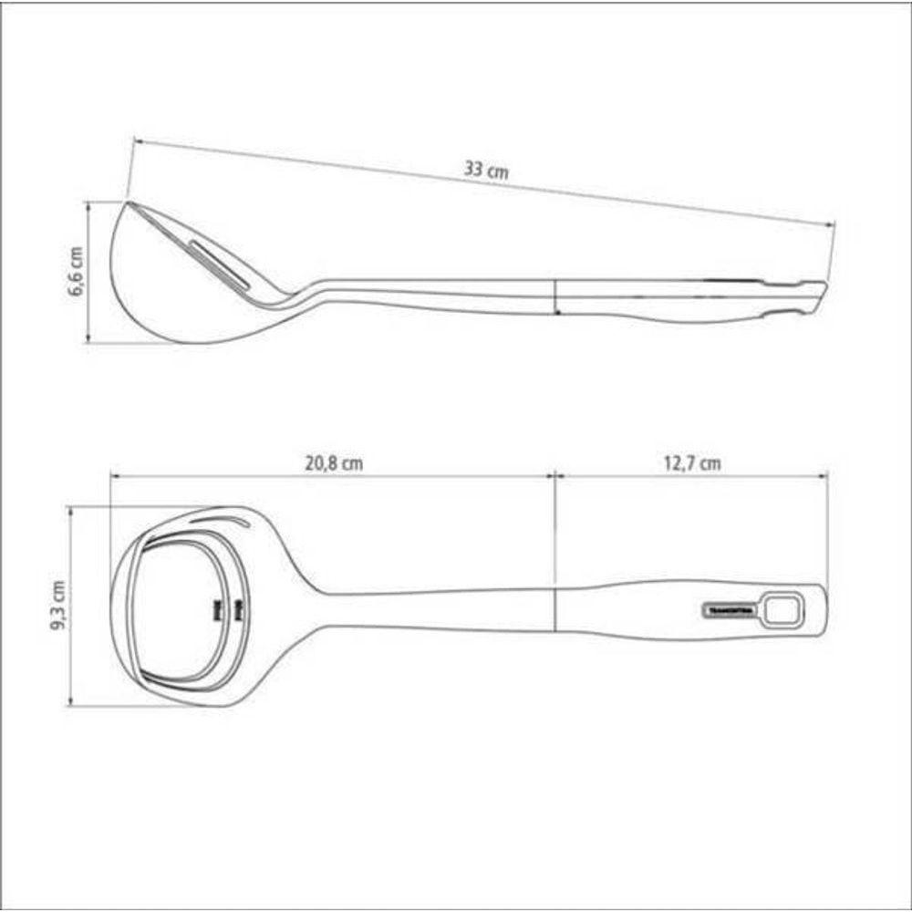 Concha Tramontina Verano 33cm Em Nylon ônixCom escala de medidas, rasgo para escoar líquidos, furo para pendurar, bojo produzido em nylon e cabo ergonômico de polipropileno, ela vai te ajudar a ganhar ainda mais elogios. A praticidade não ficou esquecida, já que o item pode ir à máquina de lavar louças. Um utensílio indispensável em sua cozinha!Recomendações de Uso:- Antes da primeira utilização, lave bem a peça e seque-a.- Para maior durabilidade do produto recomenda-se secar bem antes de guardar, mesmo após lavagem em máquina.- Para descarte do produto e embalagem siga as orientações de reciclagem vigentes.Informações Adicionais:- Utensílio de nylon, que resiste até uma temperatura de 180 °C.- Cabo com furo passante possibilitando que seja pendurado na sua cozinha.- Utensílio ideal para uso em panelas com revestimentos antiaderentes e cerâmicos, pois não danifica o produto.- Pode ir à máquina de lavar louças facilitando seu dia a dia.- Imagem meramente ilustrativa.